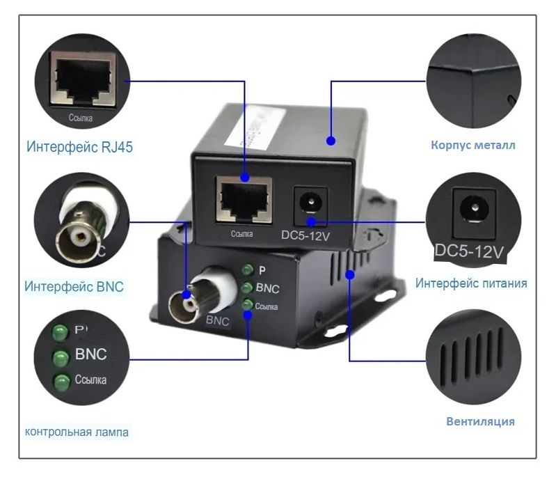 DE/LAN01 gередача сетевой IP HD-камеры через коаксиальный кабель, максимальное расстояние: 500 м.