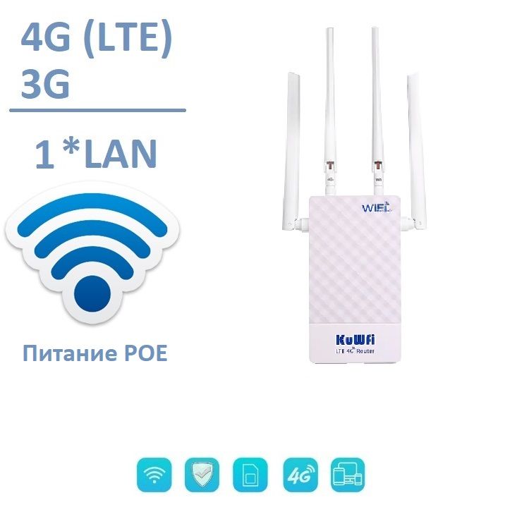 Уличный 4G/3G роутер для систем видеонаблюдения, WiFi (b/g/n) до 150 Мбит/с (питание POE) (LAN*1)