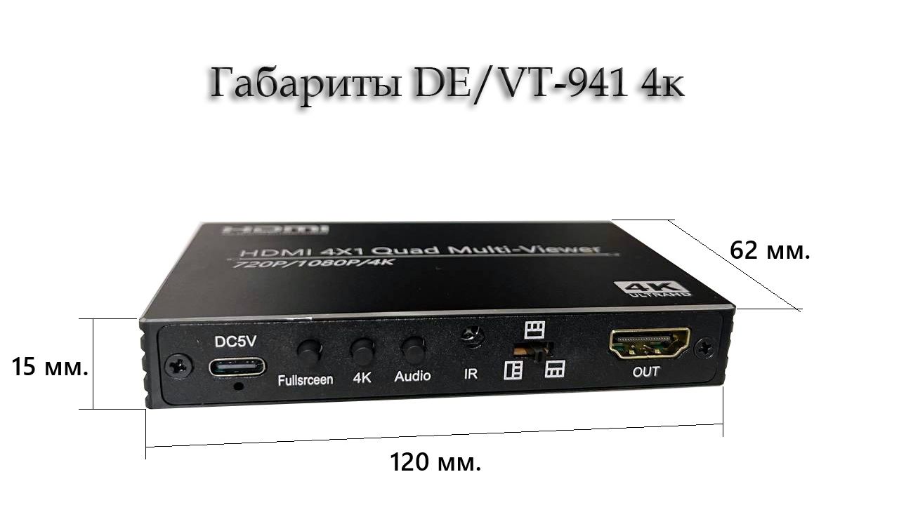 DE/VT-941 4к HDMI 4x1 Quad Multi-viewer – это профессиональное устройство для обработки и отображения 4 видеосигналов в режиме мультикартинки на одном экране.