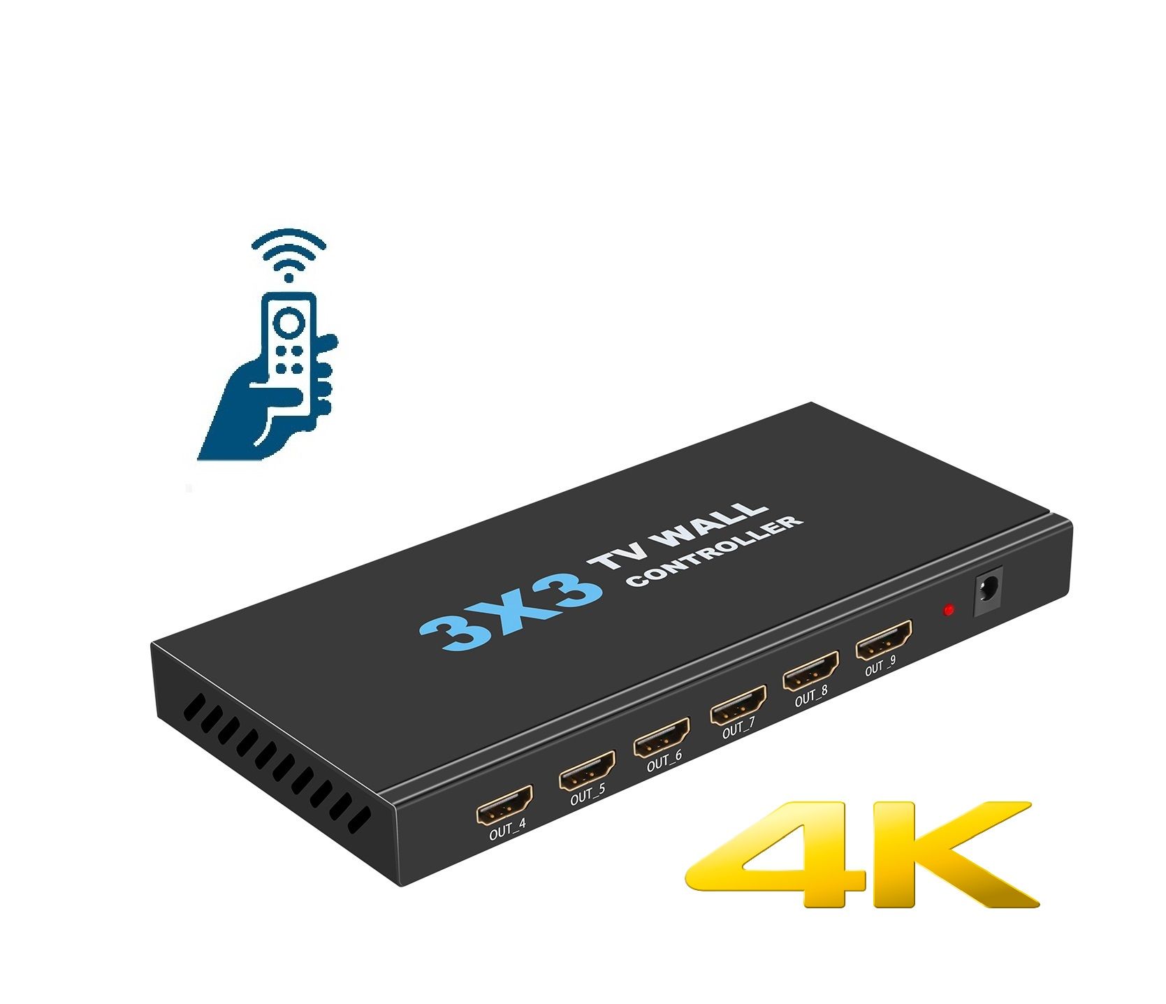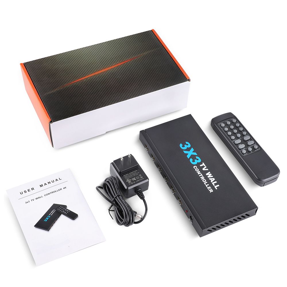 Контроллер видеостены 3x3, поддерживает 1-полосный вход HDMI и 9 выходов HDMI/4K@30Hz, основная функция чтобы разделить полный сигнал изображения HDMI/4K, 4K на 9 блоков и передать на 9 видеодисплеев (использование качестве устройства задней проекции, ЖК-телевизора и т.д.), работает в комплекте с 9 видеодисплеями высокой четкости HDMI/4K@30Hz.