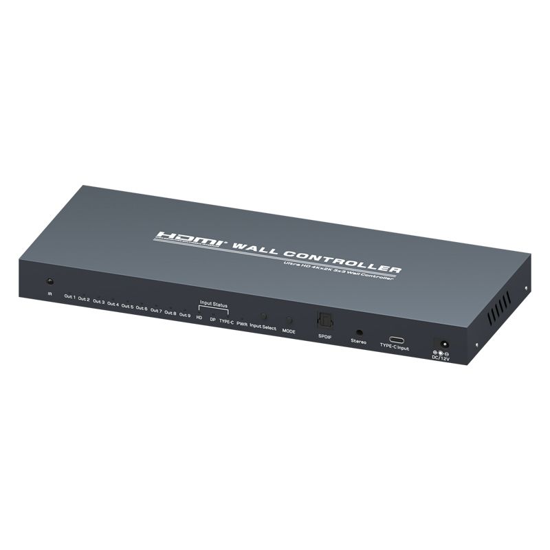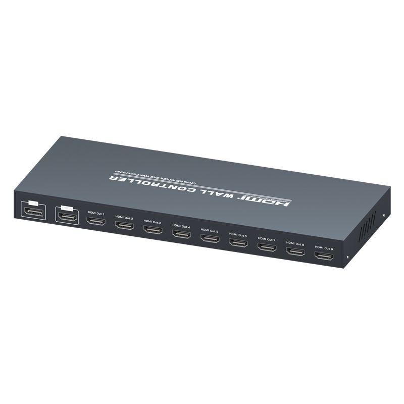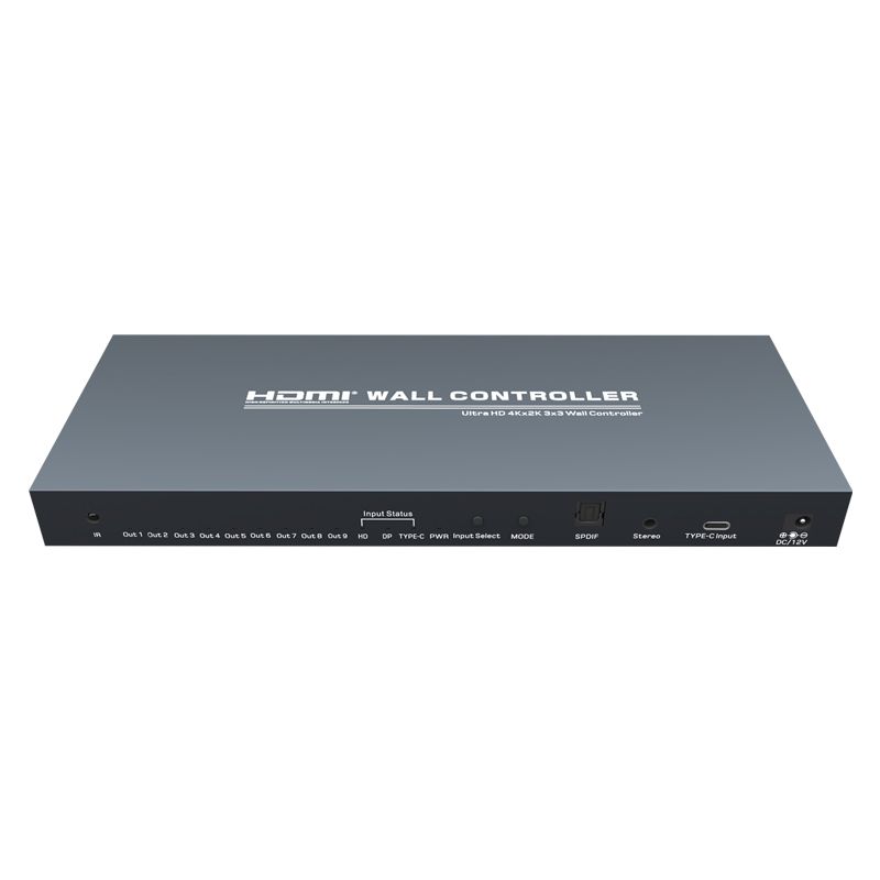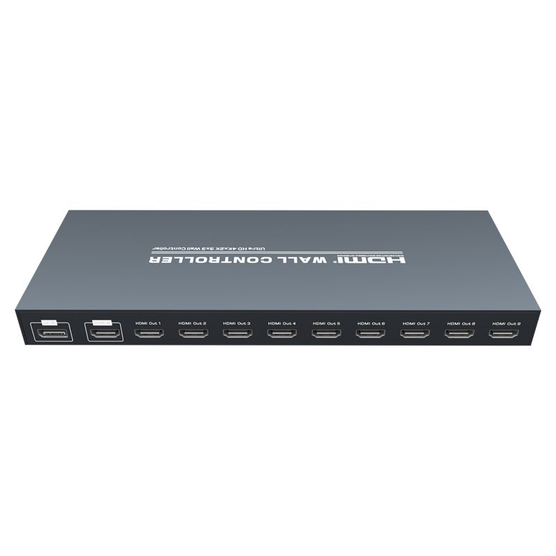 Контроллер видеостены 3x3, поддерживает 1-полосный вход HDMI и 9 выходов HDMI/4K@30Hz, основная функция чтобы разделить полный сигнал изображения HDMI/4K, 4K на 9 блоков и передать на 9 видеодисплеев (использование качестве устройства задней проекции, ЖК-телевизора и т.д.), работает в комплекте с 9 видеодисплеями высокой четкости HDMI/4K@30Hz.