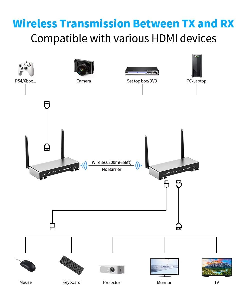 DE200KVM — Беспроводной удлинитель HDMI KVM, FullHD, до 200 м. Поддержка функции KVM.