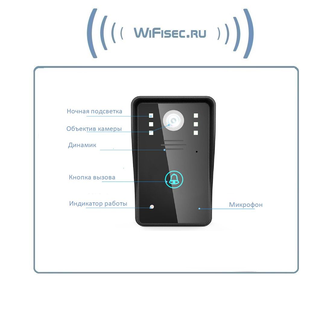 В панель WiFi видеодомофона встроена ночная подсветка, которая включается автоматически в тёмное время суток.