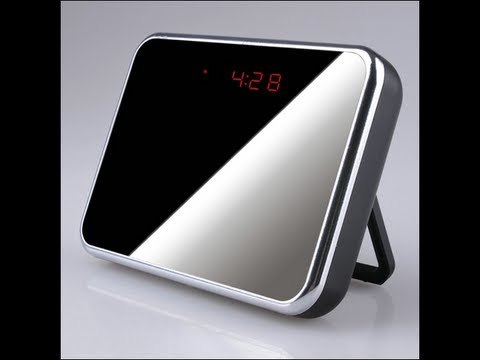 Мультифункциональные зеркальные часы/видеорегистратор со встроенной камерой с датчиком движения, пультом управления, диктофоном и термометром. Встроенный мощный аккумулятор позволяет производить запись в течение 20 часов на одной зарядке.