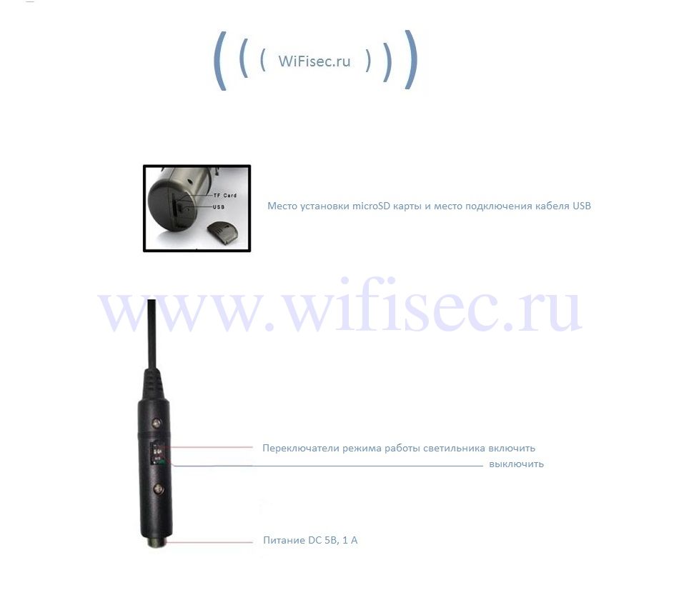 Встроенная телекамера с ИК подсветкой записывает видео и аудио информацию днём и ночью. Видеозапись осуществляется по детектору движения (датчик движения), пишется звук и видео на вставляемую микро СД карту (приобретается отдельно).