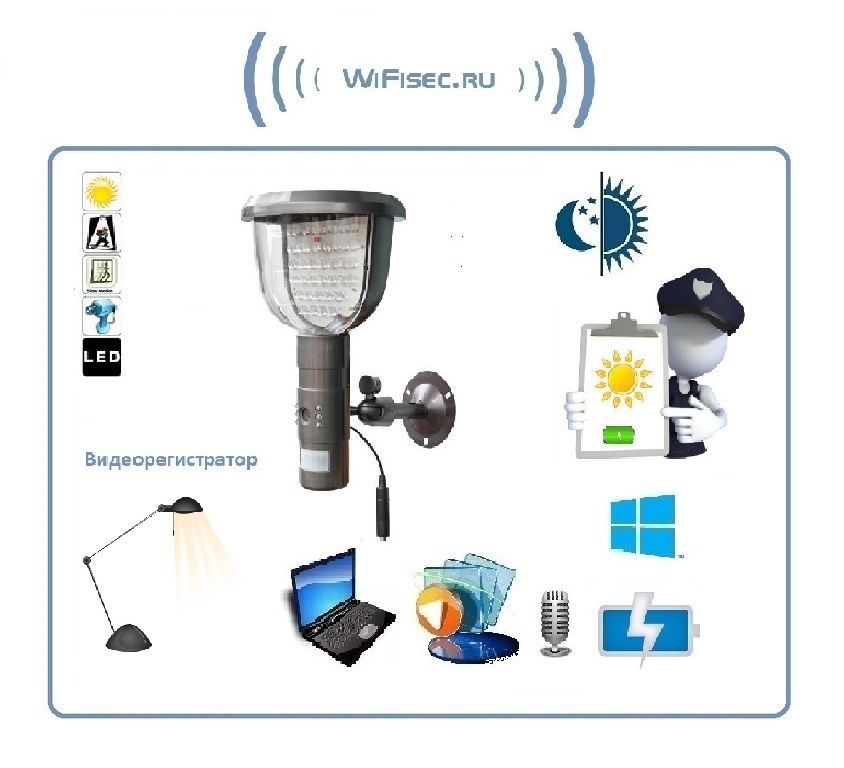DIY SS, Уличная автономная периметровая телекамера с видеорегистратором + светильник, на солнечной батарее