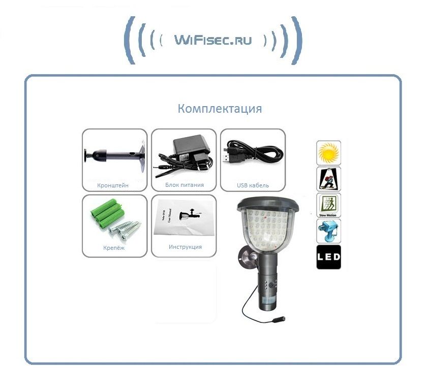 Вам не нужны средства сетевой коммуникации, локальная сеть или сеть WiFi. DE/BS-WS08A будет выполнять свою функцию и днём и ночью. И в сложных погодных условиях будет освещать пространство и записывать зону обзора.