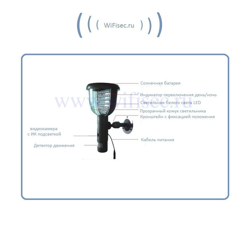 Видеорегистратор выполнен в виде дизайнерского фонаря ландшафтной подсветки. Очень приятен внешне.