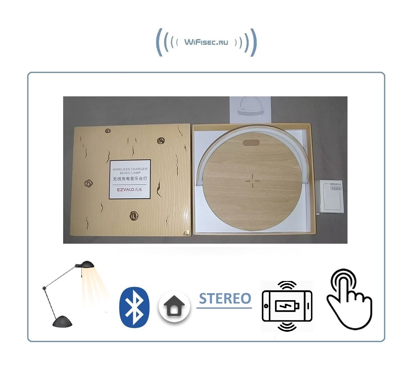 Ezvalo Lydia Bluetooth колонка, беспроводная станция зарядки (QI), светильник (ночник).