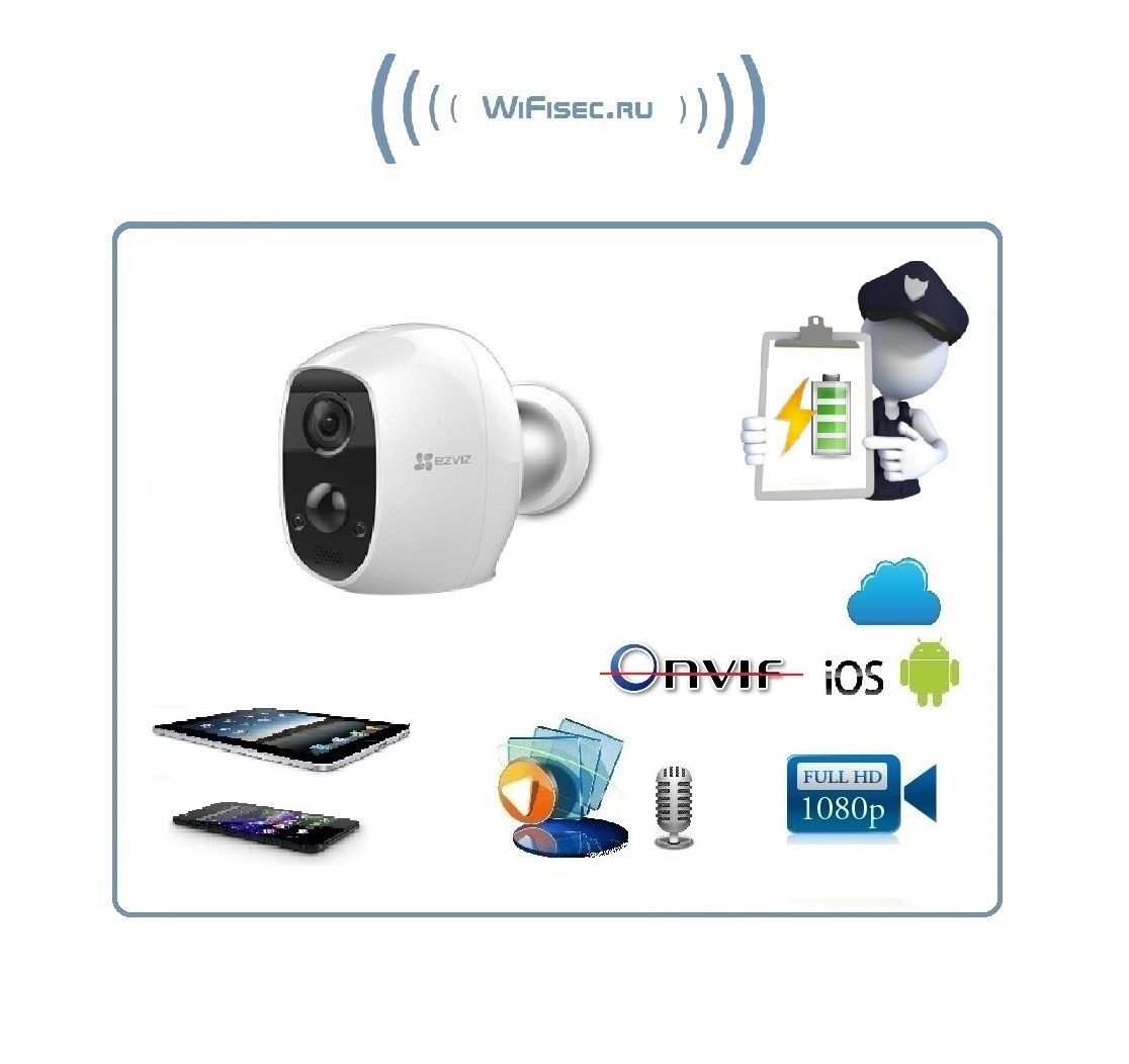 Беспроводную камеру С3А с перезаряжаемым аккумулятором можно установить абсолютно в любом месте буквально за несколько минут. Работает в комплекте с WLB