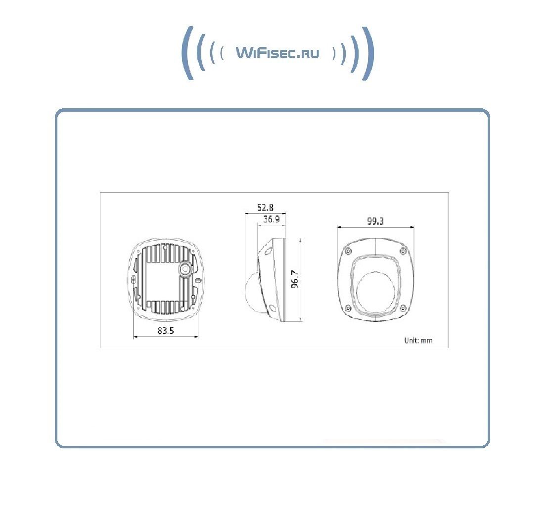 Питание DC12В ± 25% /PoE(802.3af) Потребляемая мощность 5Вт макс. Рабочие условия -40 °C…+60 °C, влажность 95% или меньше (без конденсата) Защита IP67, IK08 Дальность действия ИК-подсветки До 10м Материал корпуса Пластик/ Металл Размеры 99.3 × 96.7 × 52.8мм Вес (нетто) 0,6кг -