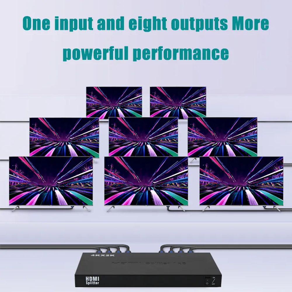 Обеспечивает передачу видеосигнала сверхвысокого разрешения ULTRA HD 4K/60Hz (3840x2160), позволяет подключить к одному источнику цифрового видео/аудиосигнала (медиаплееру, TV ресиверу и др.) одновременно восемь дисплеев или проекторов стандарта UHDTV.