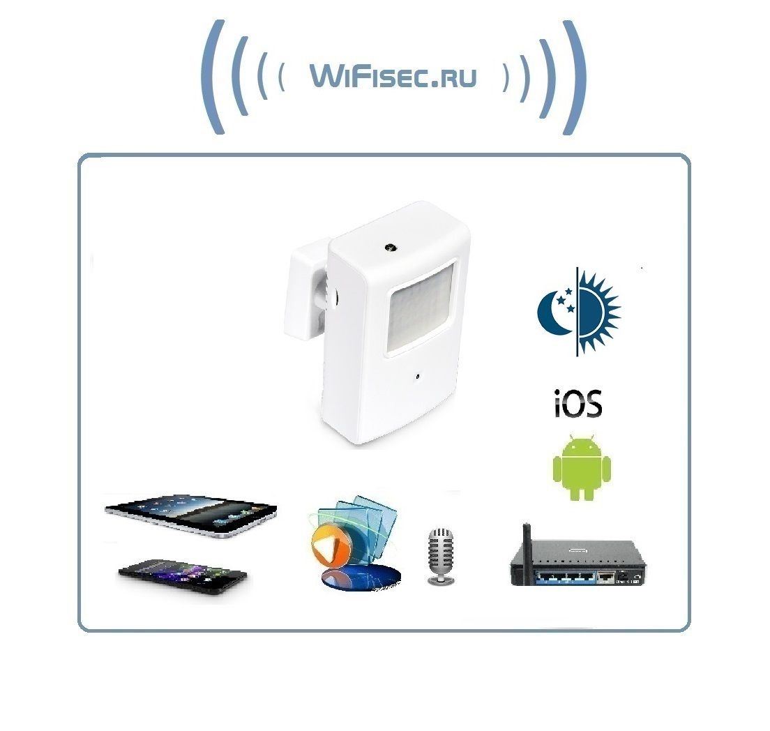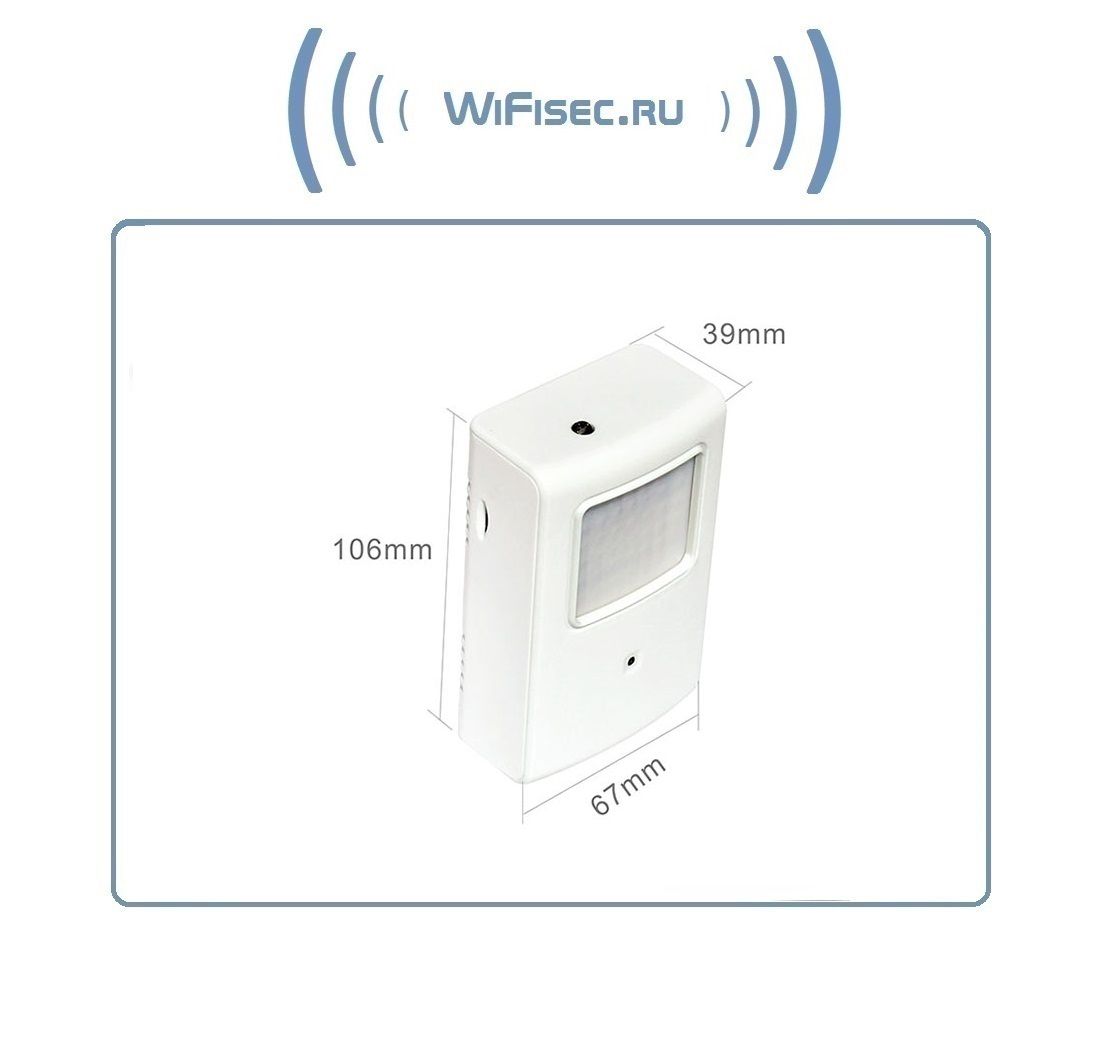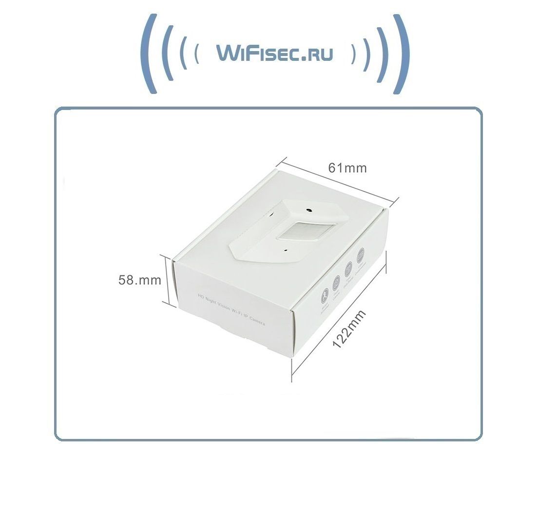 WiFi - LAN IP видеокамера с разрешением 1 Мп, 720p. Выполнена в виде инфракрасного охранного детектора движения. Удобный кронштейн позволит расположить устройство на стене/потолке. Угол обзора 74 градуса. Ночное видение включается автоматически в тёмное время суток. Встроенный микрофон и видеорегистратор, поддерживается карта памяти до 64 Гб. Доступ к просмотру через мобильное приложение с ОС Андроид/IOS. Сервис p2p позволит смотреть WiFi видеокамеру через сеть интернет по всему миру.
