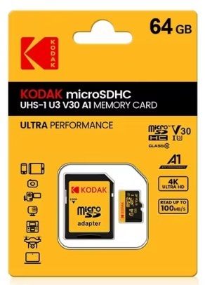 Оригинальная карта памяти Kodak Micro SD класс 10 UHS-1 U3 V30 A1 на 64 ГБ.