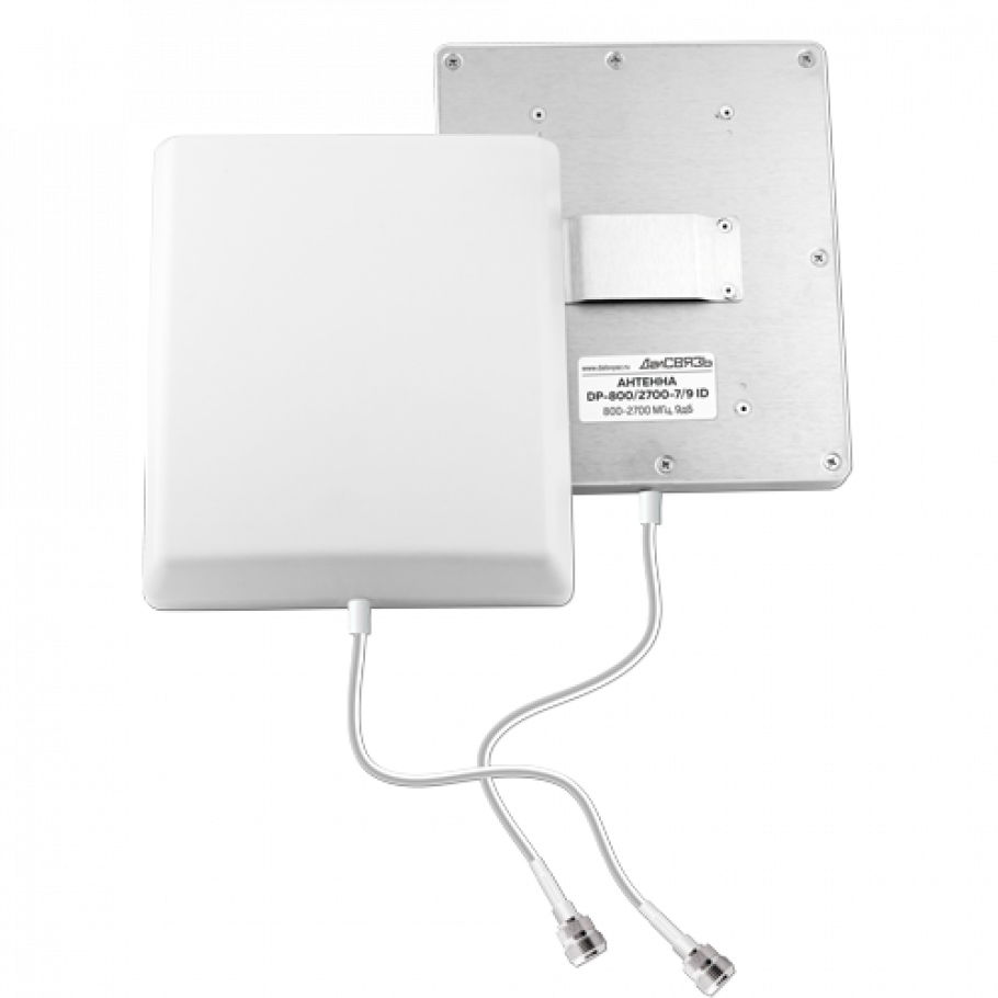 - Широкополосная панельная внешняя антенна DP-800/2700-7/9 OD, обладает оптимальным коэффициентом усиления, позволяет усилить сигнал с удаленной Базовой Станции