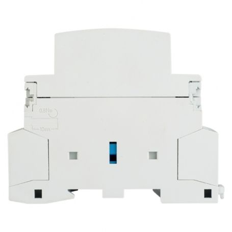 Модульные контакторы представляют из себя контактор в классическом корпусе модульного оборудования. Он состоит из неподвижных контактов, подвижных контактов, которые закреплены в подвижной части магнитной системы. Неподвижная часть магнитной системы закреплена жестко в корпусе КМ. Пружина препятствует смыканию контактов. При подаче напряжения на катушку управления в магнитной системе контактора возникает магнитное поле, которое, преодолевая сопротивление пружины, смыкает магнитную систему и замыкает контакты. При отключении напряжения с катушки управления пружина размыкает контакты. Возможна коммутация алюминиевым и медным проводом.