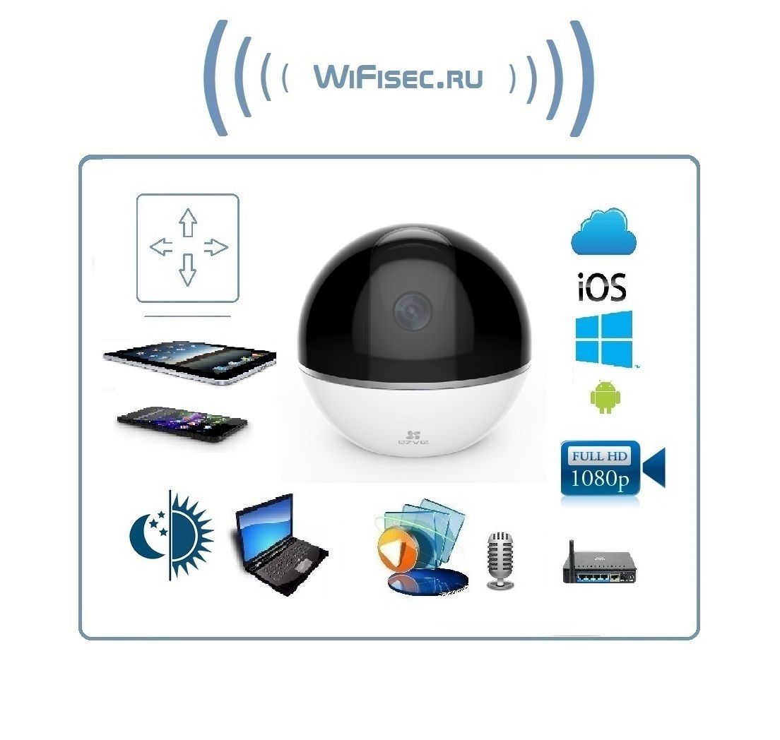 EZVIZ C6TС моторизированная WiFi/LAN видеоняня с DVR. Full HD 1080p