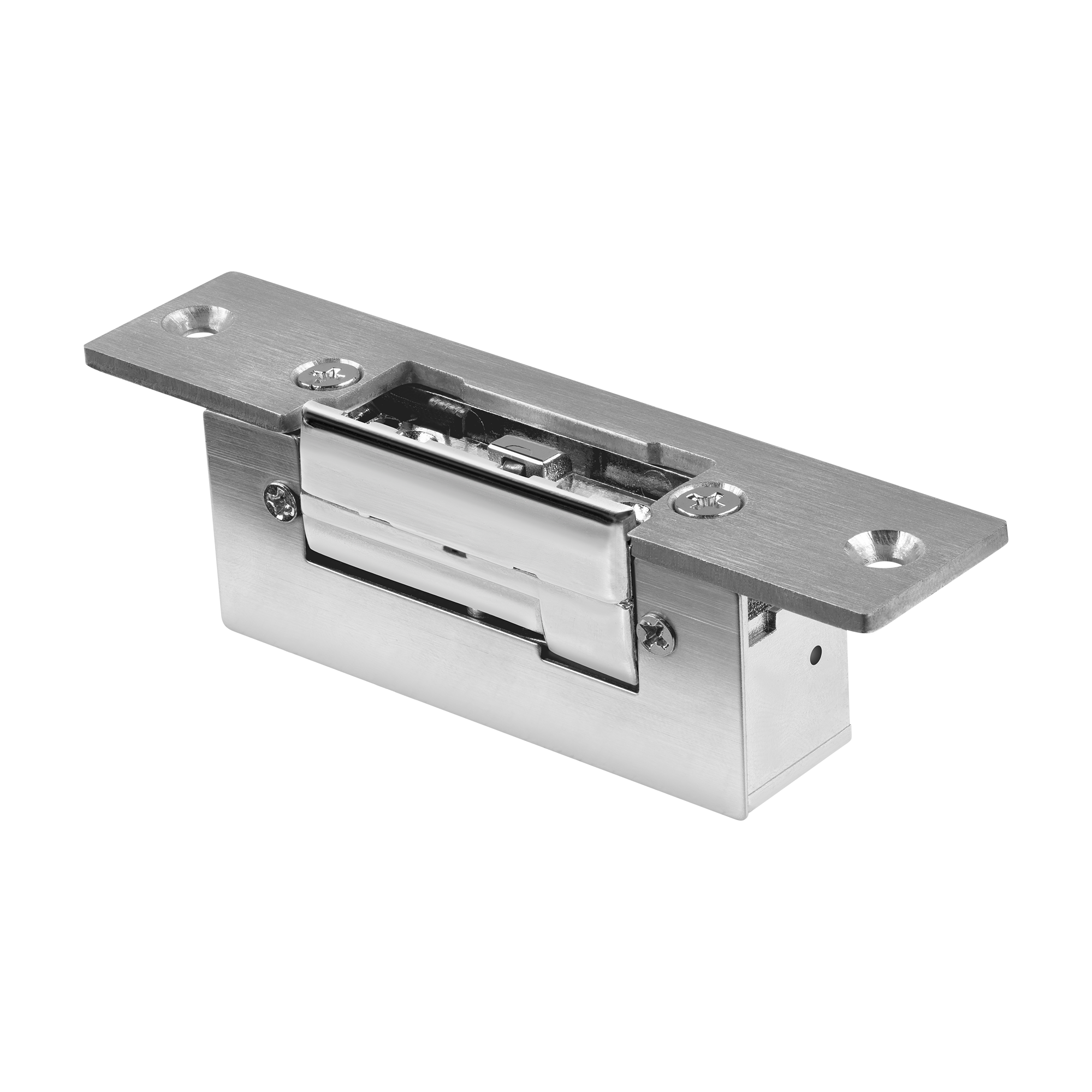 Защёлка Novicam DL1SP NO врезается в дверную коробку и крепится с помощью короткой планки для использования совместно с косым ригелем механического замка. Благодаря врезному монтажу электромеханическая защелка не нарушает дизайн дверной коробки и подходит как для правых, так и для левых дверей.
