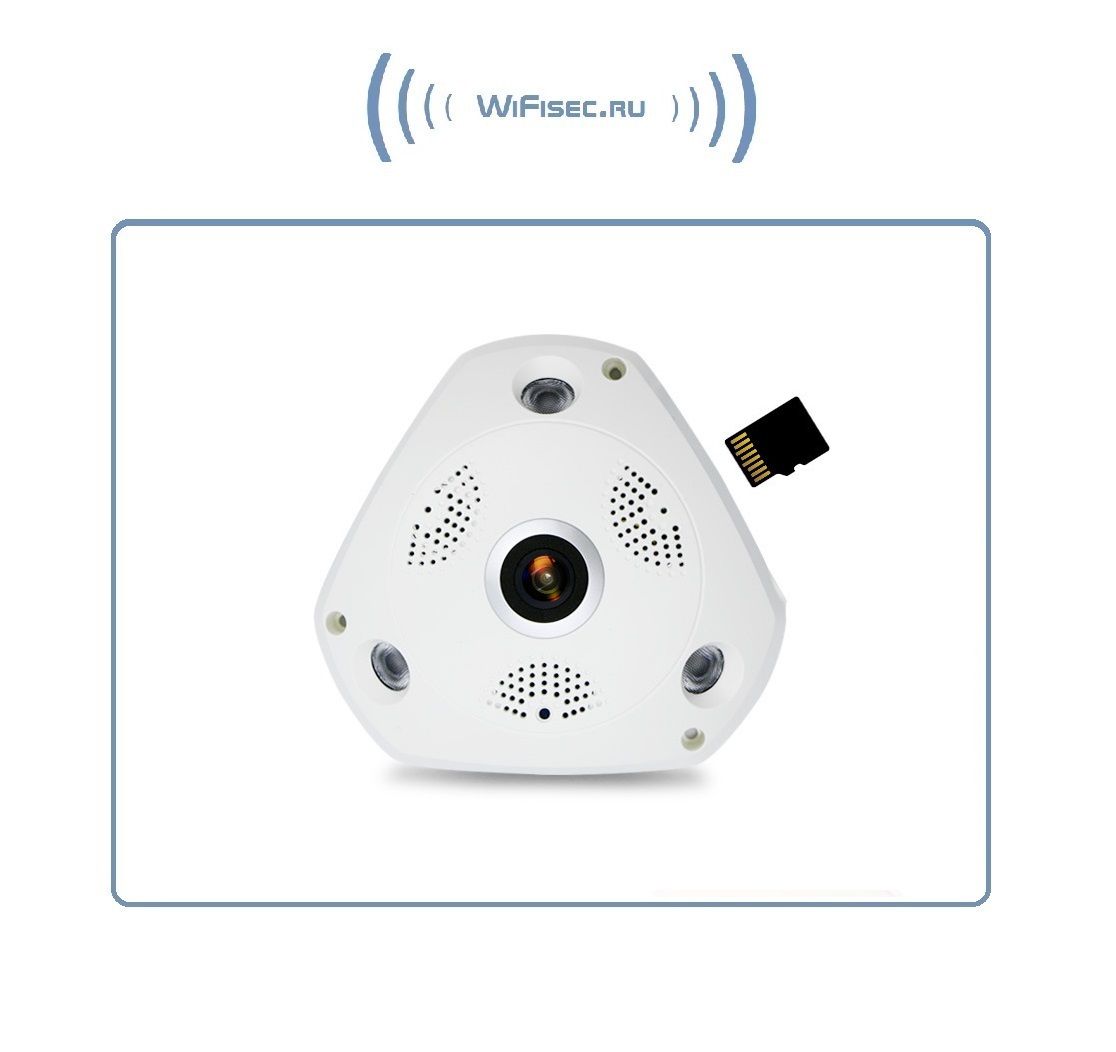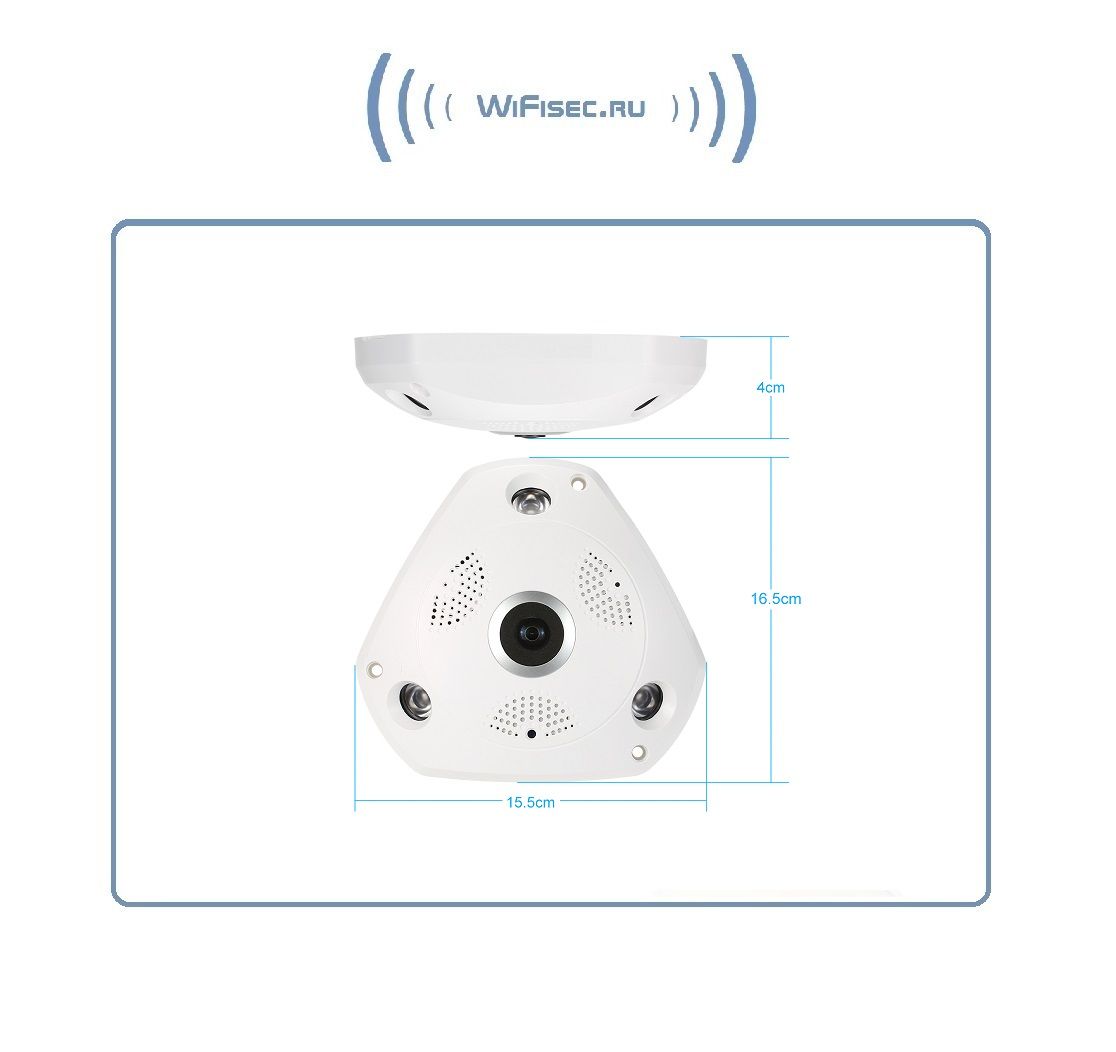 Панорамная WiFi/LAN видеокамера для установки на потолок, стену. Угол обзора данной модели составляет 360 градусов. Разрешение картинки Full HD, максимальное разрешение WQXGA (2592x1944). 5 Mp. Оснащена ИК подсветкой, которая позволяет видеть сцену обзора ночью. Сервис p2p позволяет просматривать панорамную WiFI видеокамеру из любой точки мира на мобильных устройствах через интернет. Протокол ONVIF позволяет состыковать эту модель с IP видеорегистраторы, тем самым, организовать запись видеосигнала локально. Возможна запись на облачный сервис. Просмотр через браузеры по локальной сети. Просмотр и организация записи через софт VMS.