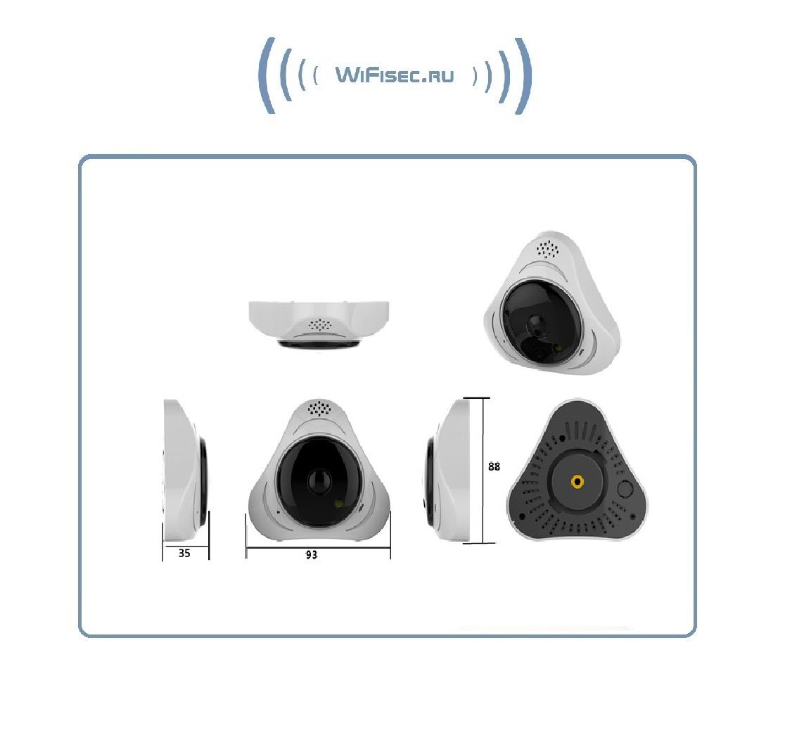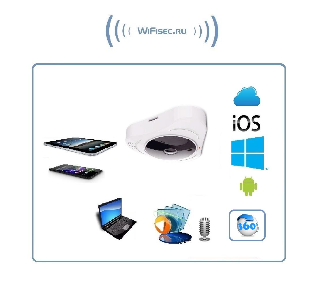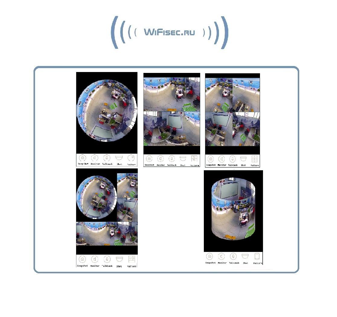 WiFi видеоняня/видеокамера с уникальной технологией объектива Рыбий глаз. Угол обзора такого объектива составляет 360 градусов. Эту модель можно расположить на потолке или стене. Видит всё в зоне плоскости установки 360 градусов вокруг. Встроенный софт мобильного приложения позволяет просматривать в обычном режиме, без искажений всю зону осмотра в 5 режимах. Вы видите всё и с увеличением в хорошем качестве. Запись видео и аудио непосредственно производится на изделие на микро СД карту памяти (при заказе выбирайте в разделе аксессуары). Интерком связь с активным подавлением шума. Ночное видение. Встроенный детектор движения. Сервис P2P (доступ из любой точки мира посредством интернет связи). Совместимость с ОС IOS, Android. Доступна к просмотру по локальной сети на ПК с ОС Windows через софт CMS, а так же для интеграции с IP видеорегистраторами (порт 8899).