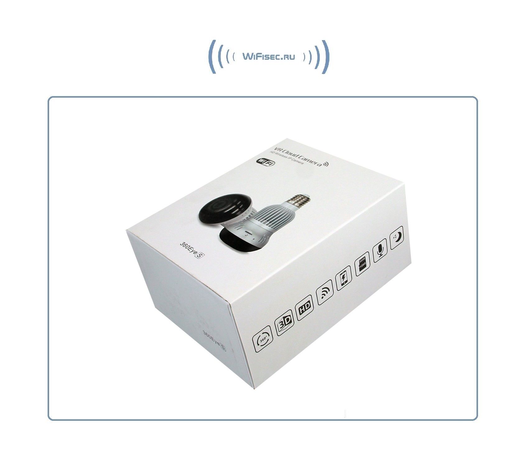 Панорамная WiFi видеоняня/видеокамера (лампа накаливания, цоколь Е27) с DVR с включением освещения, Full HD