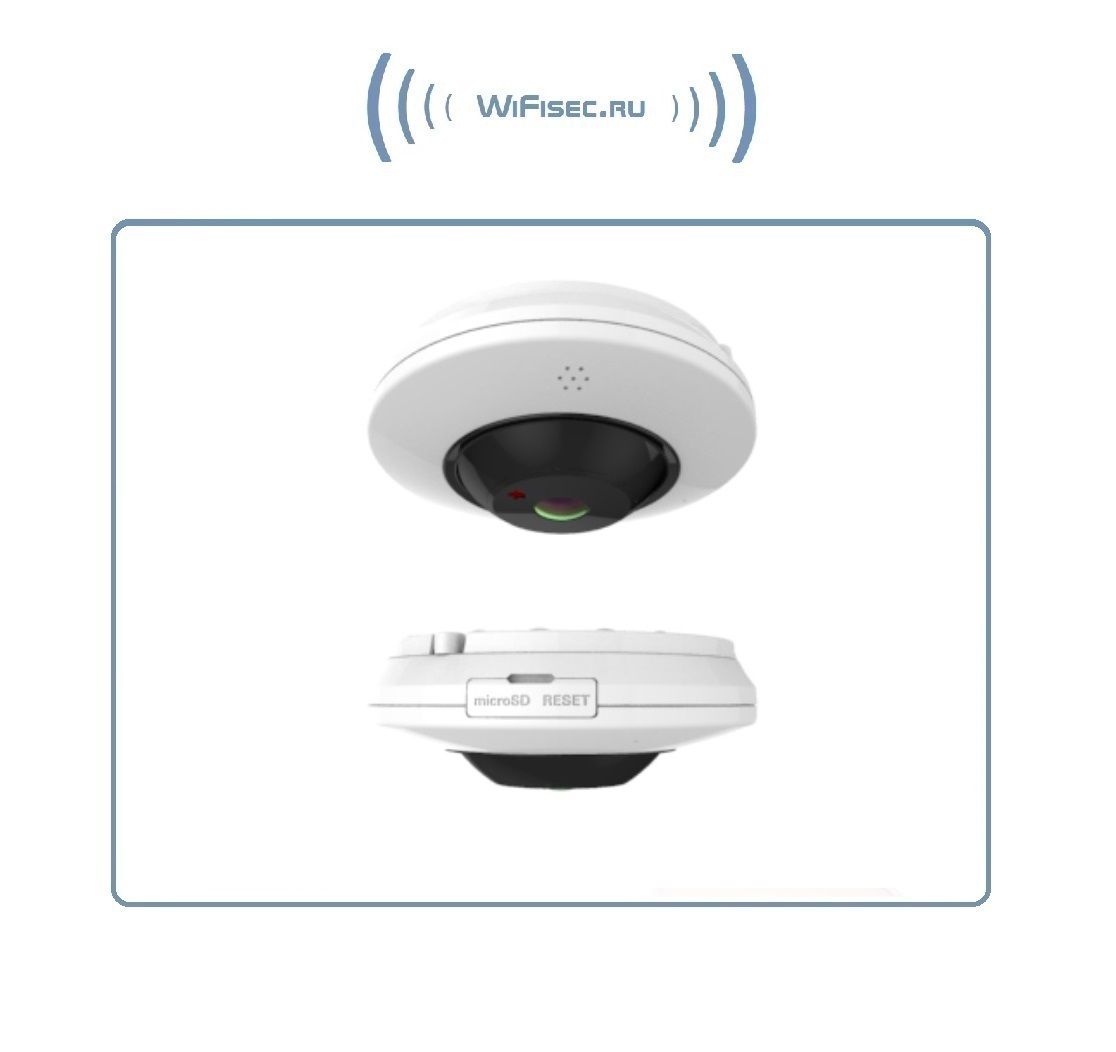 Панорамная беспроводная (Wi-Fi/LAN) видеокамера для охранного видеонаблюдения IP-367FE-2M WIFI/LAN. Картинка Full HD 1080p. 2 Mp. Просмотр с мобильного устройства по всему миру (сервис p2p). На борту встроенный видеорегистратор (поддержка карт микро СД до 128 Гб). Ночное видение до 20 метров.