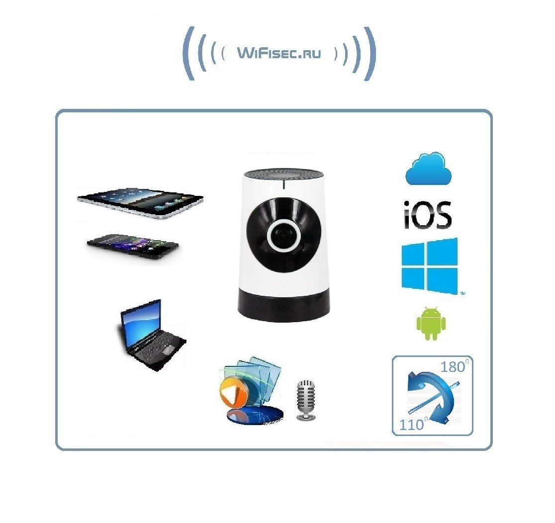 WiFi видеоняня/видеокамера с уникальной технологией объектива Рыбий глаз. Угол обзора такого объектива составляет по горизонтали 180 градусов, а по вертикали 110. Встроенный софт мобильного приложения позволяет просматривать в обычном режиме, без искажений всю зону осмотра. Режим панорамирования распространяется на всё записанное видео и сделанные фото. Вы видите всё и с увеличением в хорошем качестве (пожалуйста посмотрите видеоролик). Запись видео и аудио непосредственно производится на изделие на микро СД карту памяти (при заказе выбирайте в разделе аксессуары). Интерком связь с активным подавлением шума. Ночное видение. Встроенный детектор движения. Сервис P2P (доступ из любой точки мира посредством интернет связи). Совместимость с ОС IOS, Android. Просмотр через ПК по локальной сети (ОС Windows).