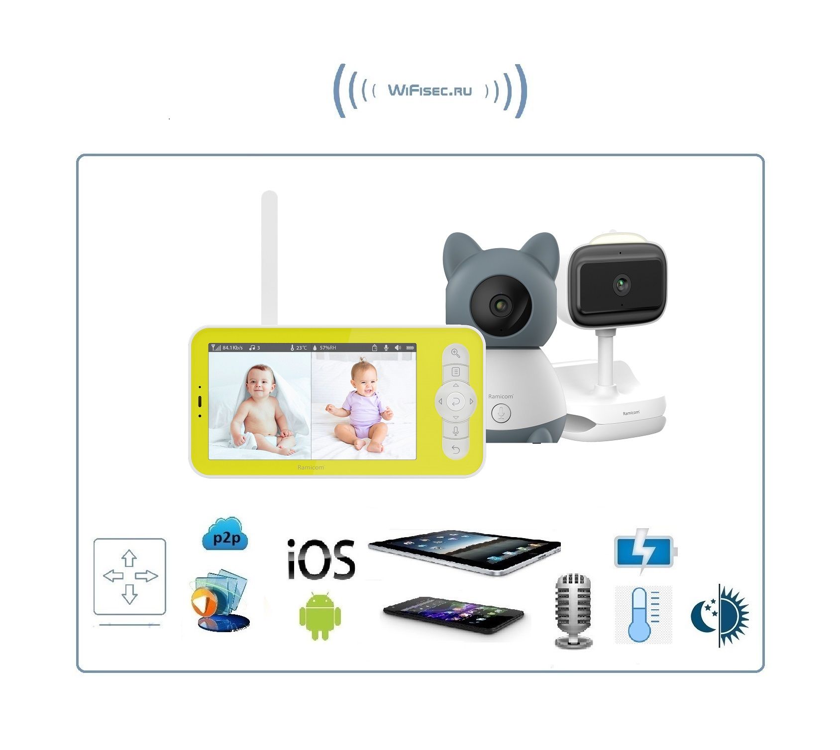 Видеоняня Ramicom VRC300400C – это видеоняня с большим экраном на родительском блоке и двумя камерами, может подключаться к Wi-Fi сети для наблюдения не только внутри дома, но и на любом отдалении от него с помощью приложения на смартфоне или планшете с выходом в интернет и возможностью записи видео и звука на карту памяти с мобильного устройства или с родительского блока. Устройство оснащено датчиком движения, датчиком звука, гигрометром, термометром, ночным видением, двухсторонней связью и другими не важными функциями. Все это обеспечивает надёжный мониторинг, когда ваш малыш спит или играет.