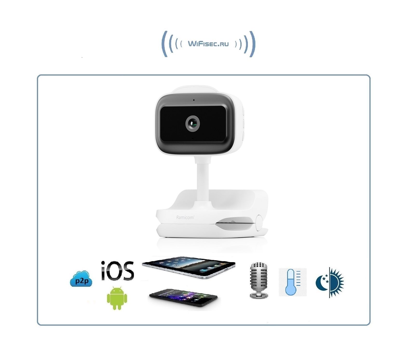 Wi-Fi Видеоняня Ramicom VRC400C с встроенным микрофоном, с DVR Full HD 2К