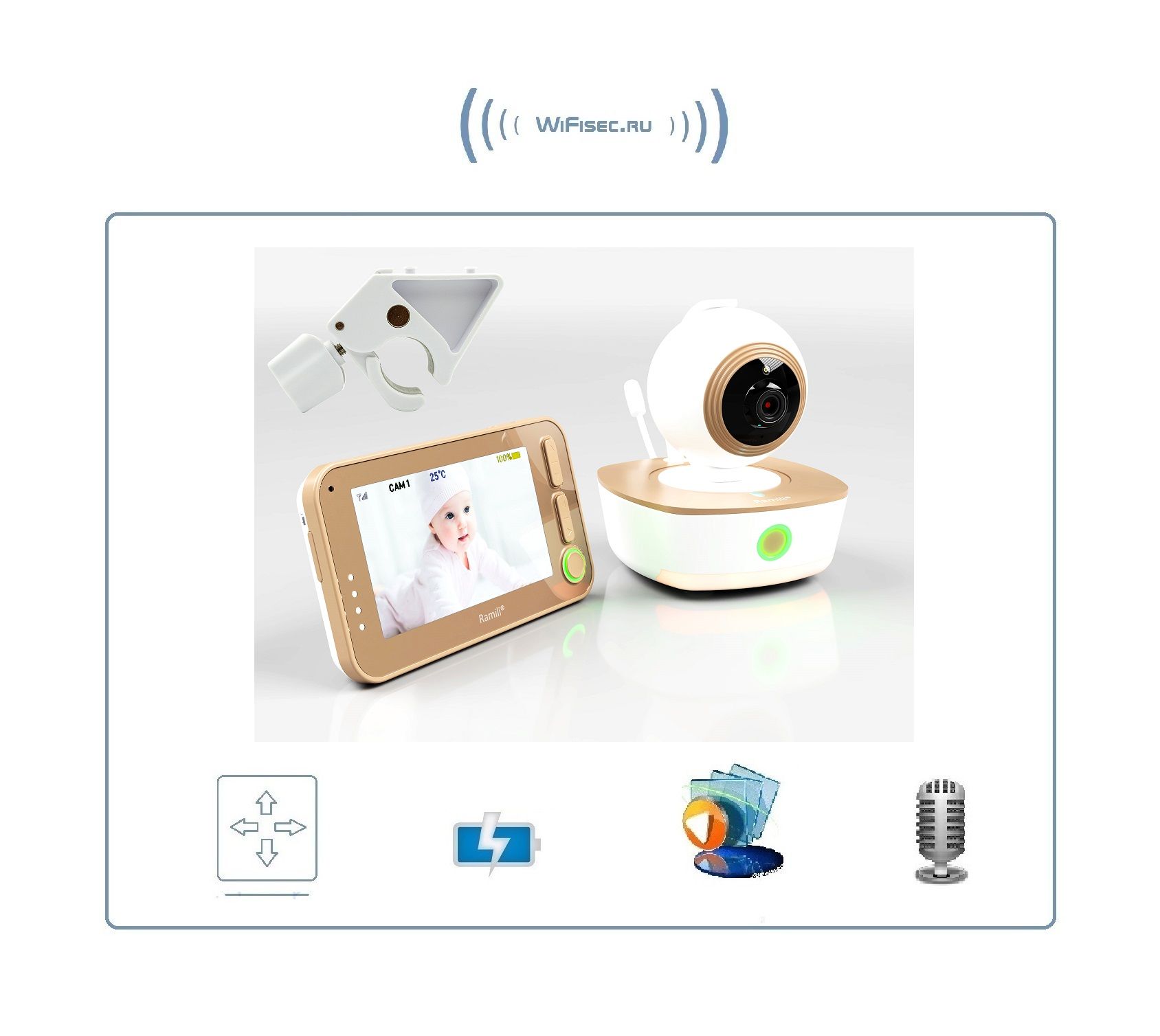 Ramili® Baby RV1300RC. Предназначена для наблюдения за ребенком на расстоянии до 300 метров. Оснащена поворотной камерой и монитором с дисплеем 10.9 см (4.3 дюйма), между которыми обеспечена надёжная и безопасная цифровая связь с системой преодоления помех. Камера располагается в детской комнате и передаёт на экран монитора видео и звук высокого качества.