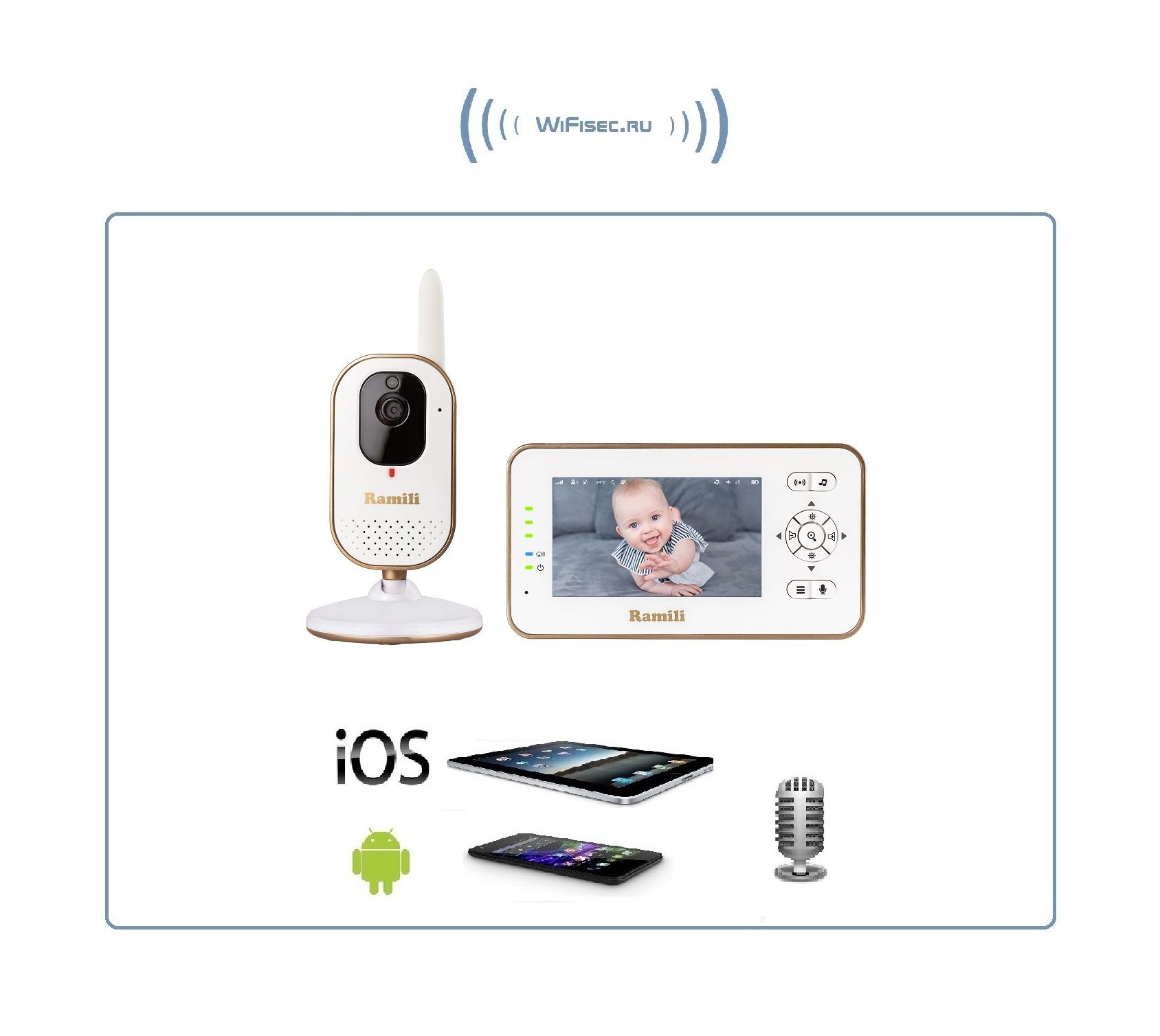 Ramili Baby RV350 Wi-Fi видеоняня с монитором 4.3" и видеокамерой, сервис р2р, HD