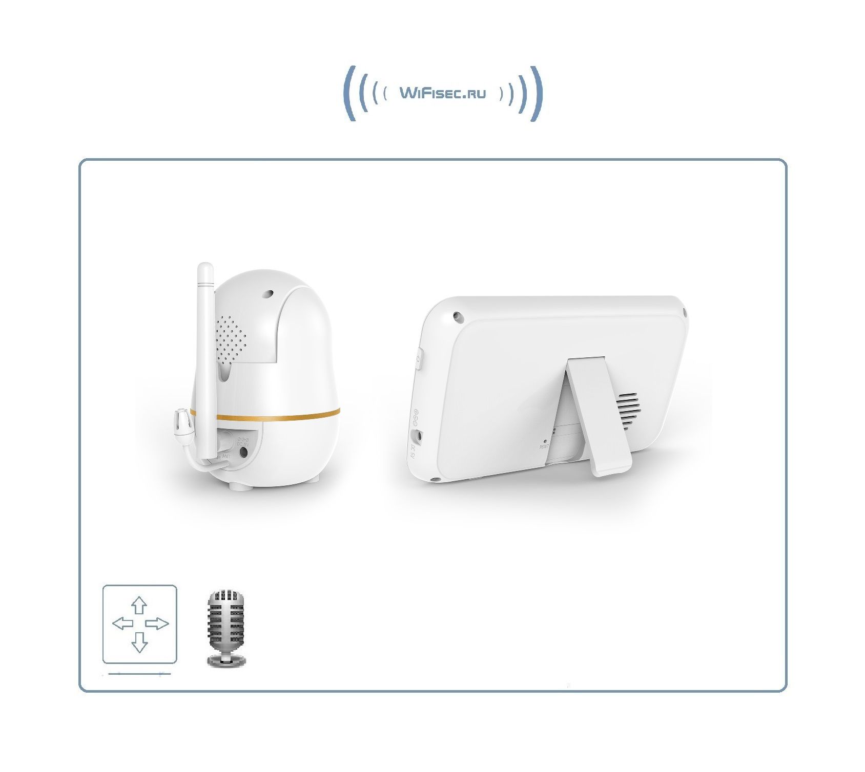 - Поворотная в любом направлении камера. Управление поворотом кнопками на родительском блоке.