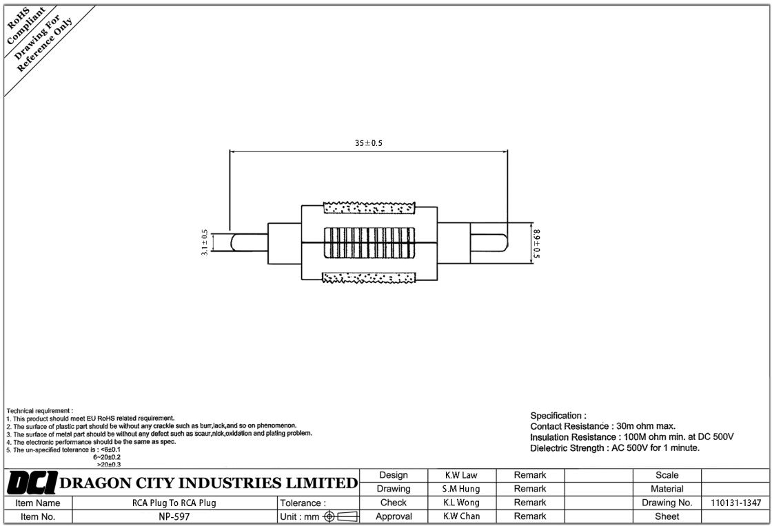 Первый разъем RCA папа
