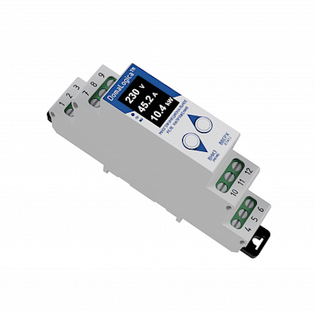 РКН DVC 0624 имеет функцию измерения тока. Ток измеряется при помощи внешнего трансформатора тока. Предел измерения тока при помощи ТТ идущего в комплекте 100А ограничение по кабелю 36мм. Но для измерения тока можно подключить любой внешний ТТ.