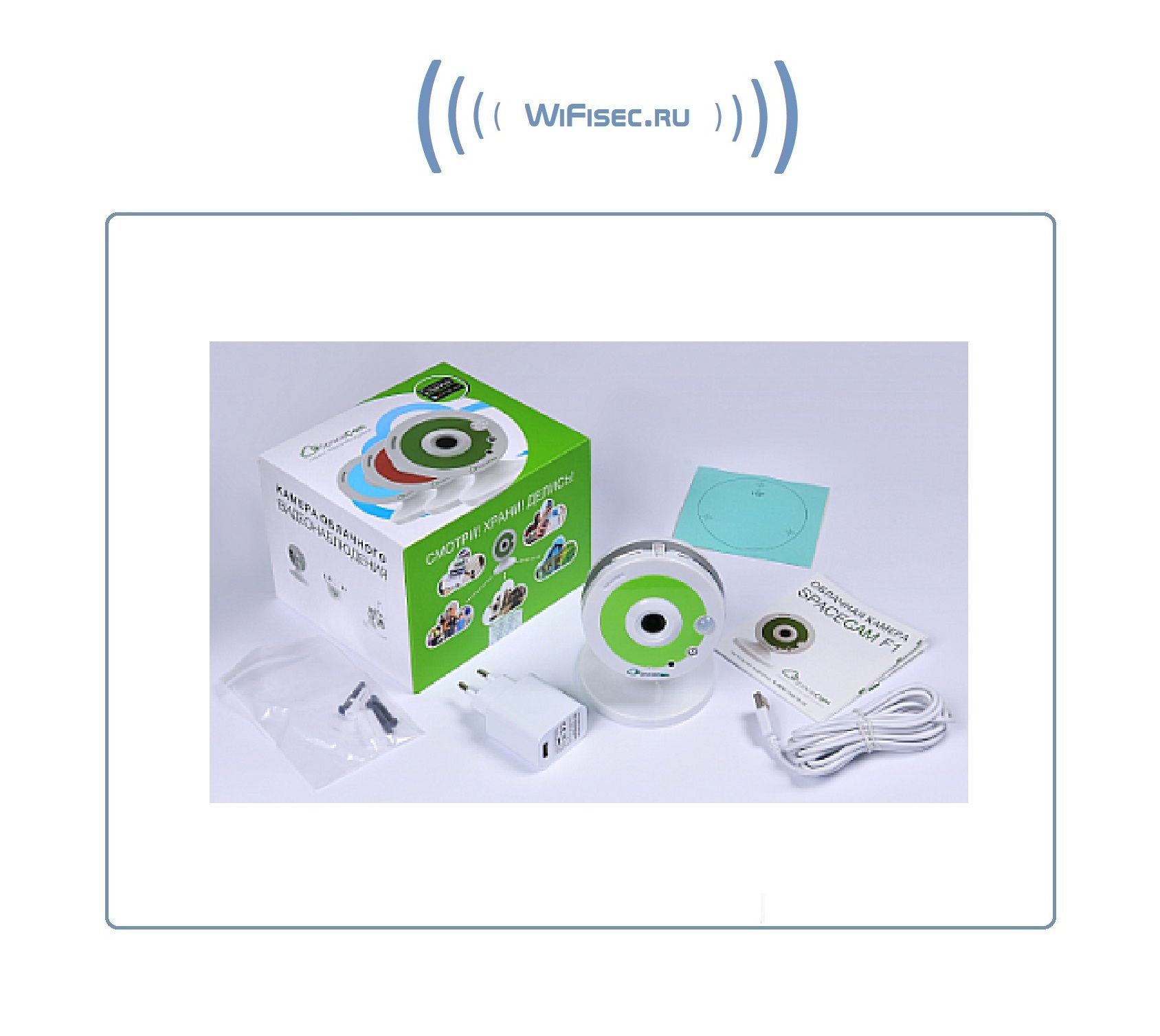 WiFi/LAN IP-камера наблюдения для работы с облачным сервисом SpaceCam, внутренняя установка, разрешение 1280х720, угол обзора по горизонтали 100°, встроенный WiFi-модуль 802.11b/g/n, встроенный микрофон, блок питания в комплекте, ИК-подсветка до 10 м, цвет модели - бело-зелёный.