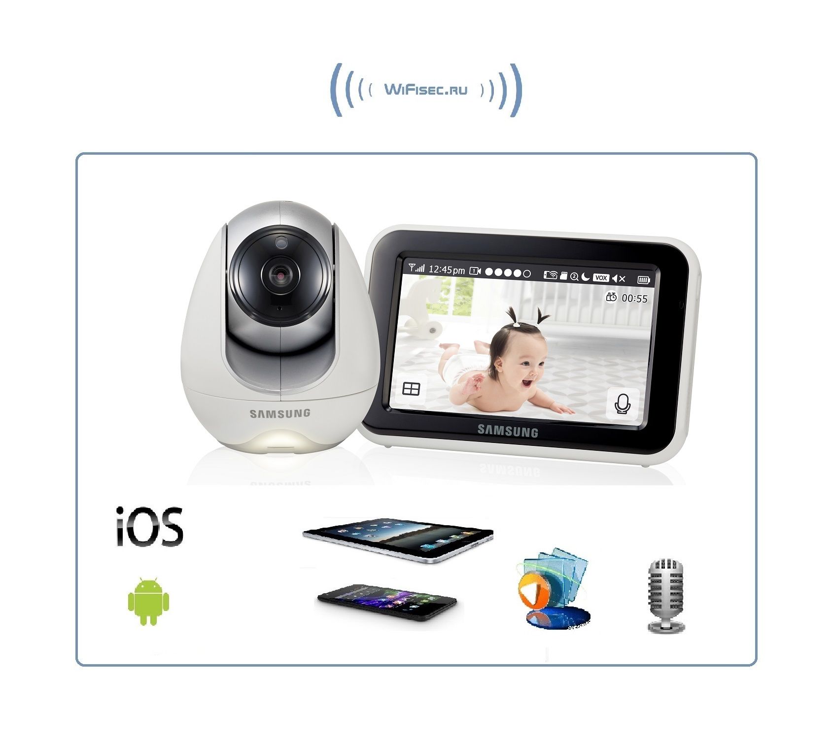 Samsung, двухрежимная видеоняня SEW-3053WP (Wi-Fi и FHSS) с сенсорным монитором и моторизированной видеокамерой с DVR и P2P, HD