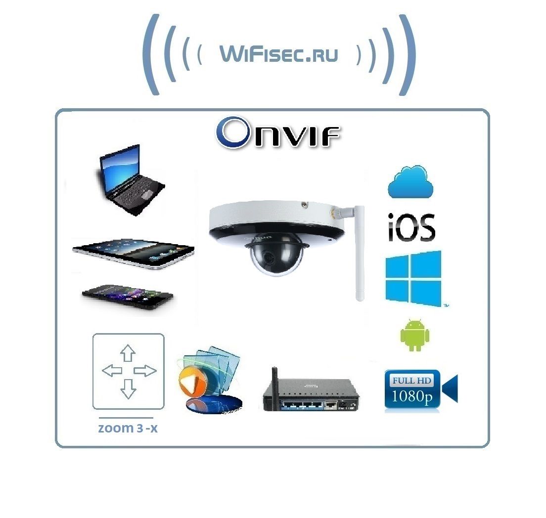 Видеокамера IP Купольная поворотная, WI-FI 2Mп;