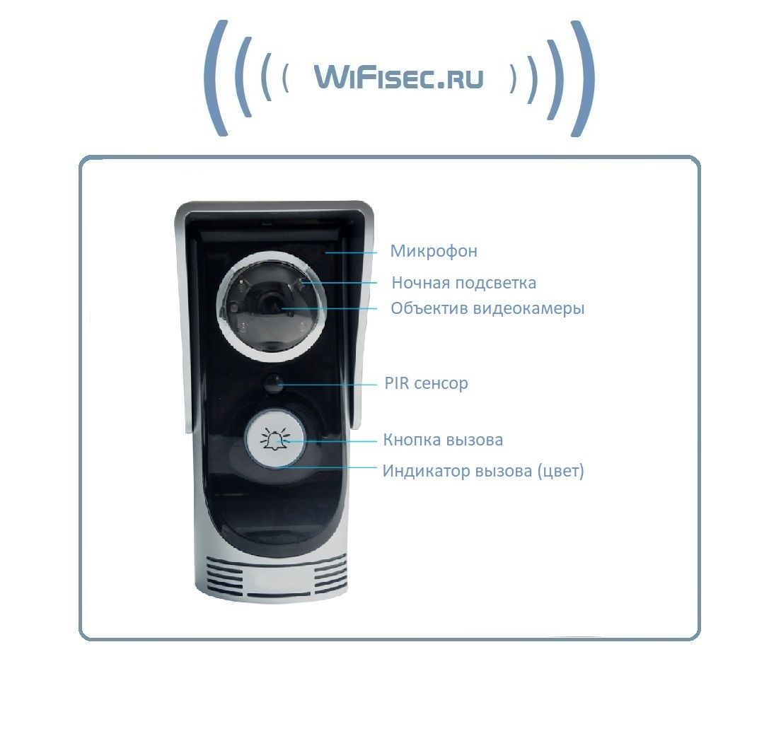 В панель WiFi видеодомофона встроена ночная подсветка, которая включается автоматически в тёмное время суток.