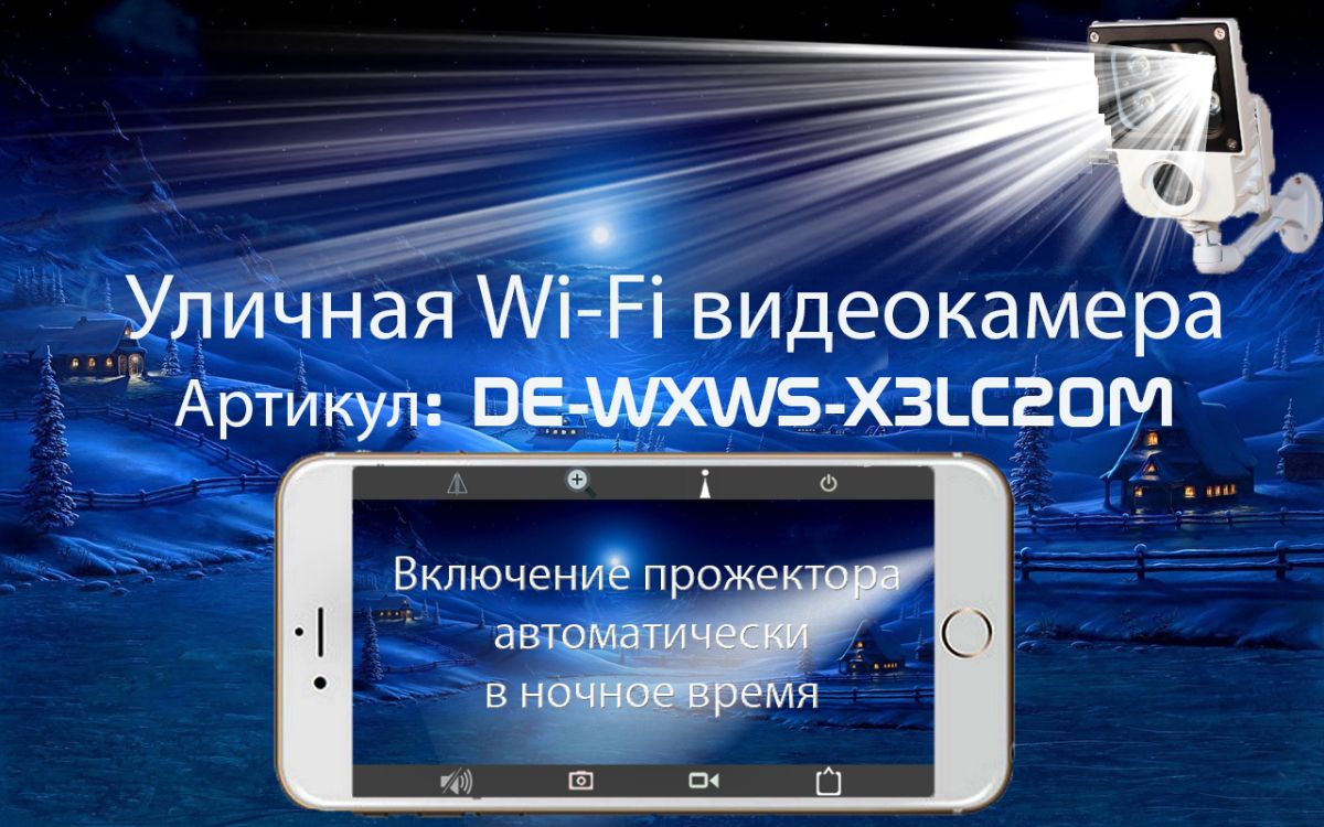 DE-WXWS-X3LC20M - уличная WiFi/LAN видеокамера с разрешением 1080р (FullHD). 2Mp. В корпусе с уличным прожектором дневного света. Изделие работает как IP WiFi/LAN видеокамера и как прожектор. Включение прожектора происходит от встроенного датчика освещённости в ночное время. Ночное видение включается при включённом прожекторе, площадка в 30 метров хорошо освещается мощными LED светильниками. Дальность связи с роутером по прямой видимости - до 50 метров. Температурный режим работы изделия от -20 до + 60 град. С. Сервис p2p позволяет использовать просмотр изделия на мобильных устройствах через сеть интернет из любой точки планеты. Протокол ONVIF позволяет работать устройству с IP видеорегистраторами популярных брендовых производителей.