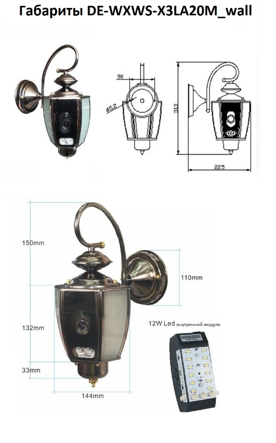 Данная модель беспроводной IP видеокамеры Xinweis DE-WXWS-X3LA20M_wall предназначена для расположения на улице в качестве декоративного светильника и уличной IP видеокамеры. В ночное время, включается свет в светильнике и включается подсветка ночного видения.