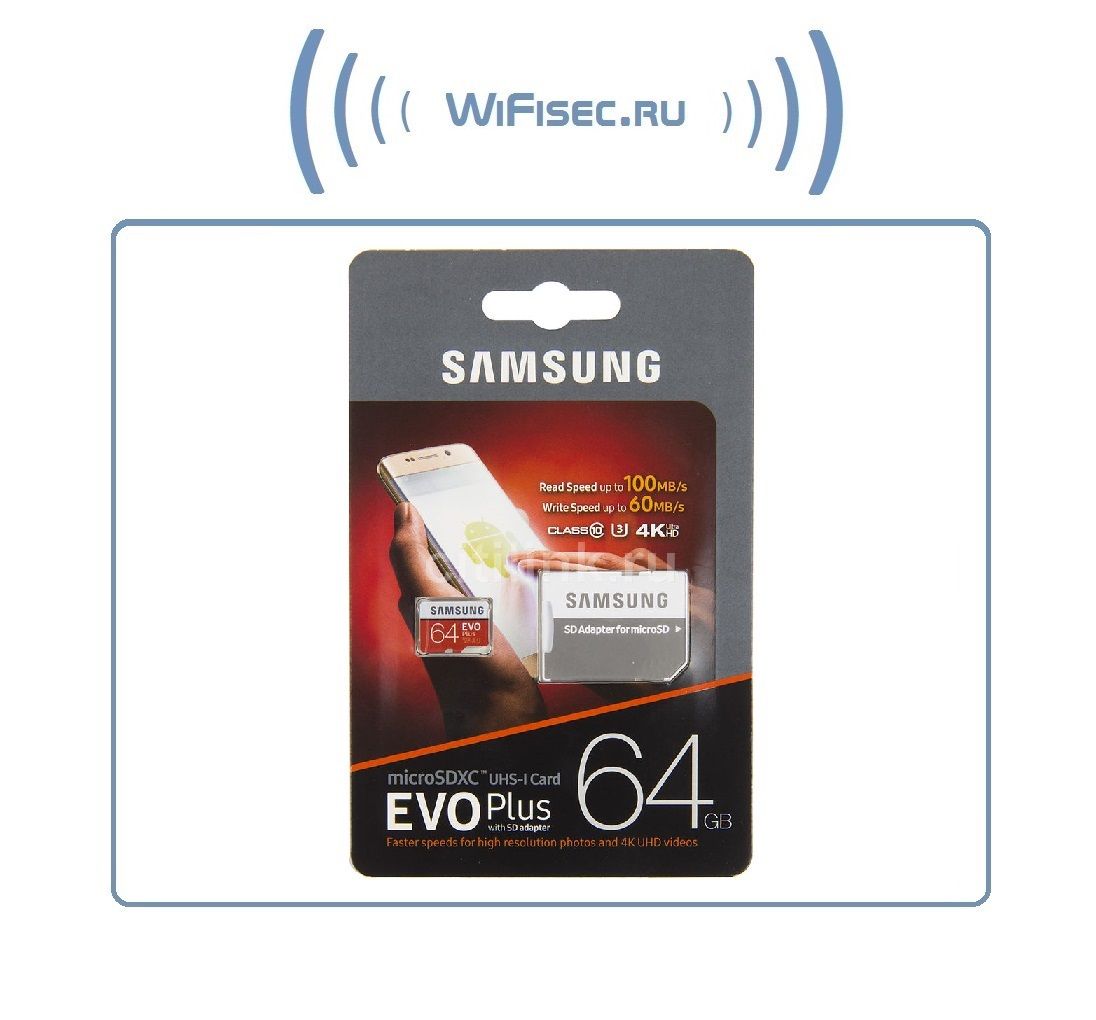Карта памяти Samsung EVO Plus microSD обладает повышенной ёмкостью и совместимостью с разными устройствами, она ориентирована на практическое использование в вашей жизни. Эта карта совместима с картам класса UHS-I Speed Class 1 (U1) и Class 10 и рассчитана на запись видео в формате Full HD/4к. При скорости чтения / записи 100 млн байт / сек и 64 млн байт / сек соответственно, приложения, видео и файлы будут загружаться еще быстрее. Скорость передачи данных зависит от используемого оборудования и условий тестирования.
