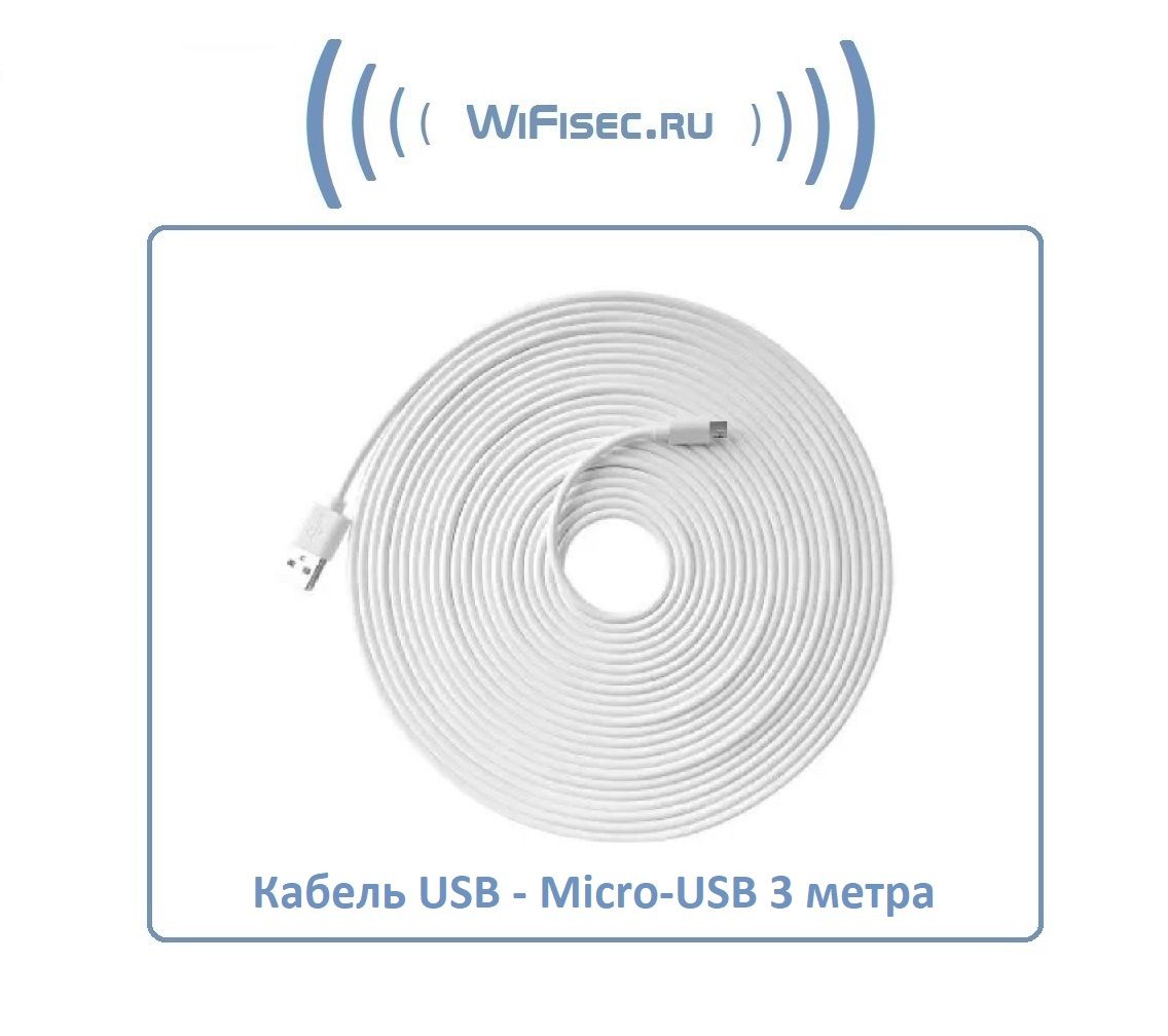 Кабель для питания Wi-Fi видеокамер USB - Micro-USB, длина 3 м.