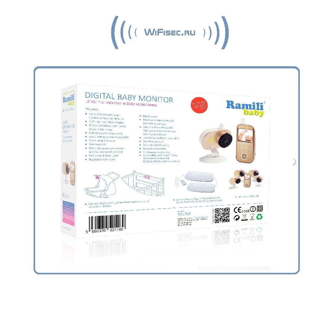 - Возможность подключения монитора дыхания Ramili Baby Movement Sensor Pad SP200 и SP100.