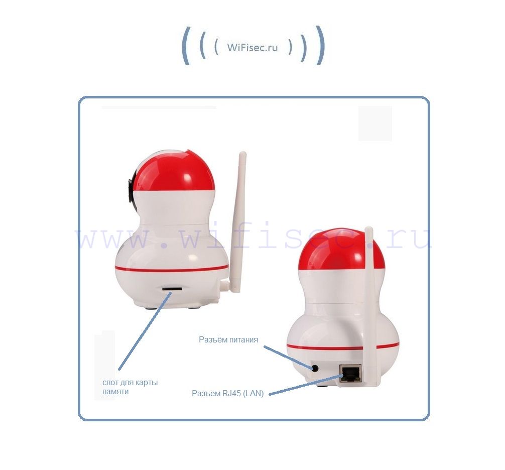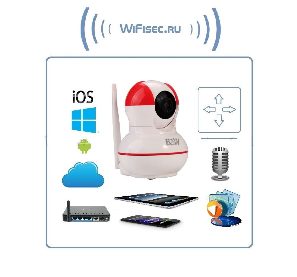 Беспроводная WiFi IP-камера с мегапиксельным разрешением разработана для видеонаблюдения внутри помещений и для мониторинга по локальной сети или через интернет. Устройство имеет слот для microSD-карты, обеспечивающей хранение записей и скриншотов. IP-камера оснащена 1-мегапиксельным СMOS-сенсором Omnivision с разрешением 1280x720 при 25 кадрах в секунду. Также камера имеет встроенную инфракрасную подсветку для ночного наблюдения на расстоянии до 15 метров. Для реализации функции двухсторонней аудиосвязи камера оснащена встроенными микрофоном и динамиком. Благодаря поворотному механизму может обеспечивать обзор с различных углов обзора. Для альтернативной работы и настройки по сети камера имеет обычный проводной Ethernet интерфейс. Для удалённой работы камера поддерживает облачный сервис P2P. Питание камеры осуществляется от блока питания 5 В. напряжением.