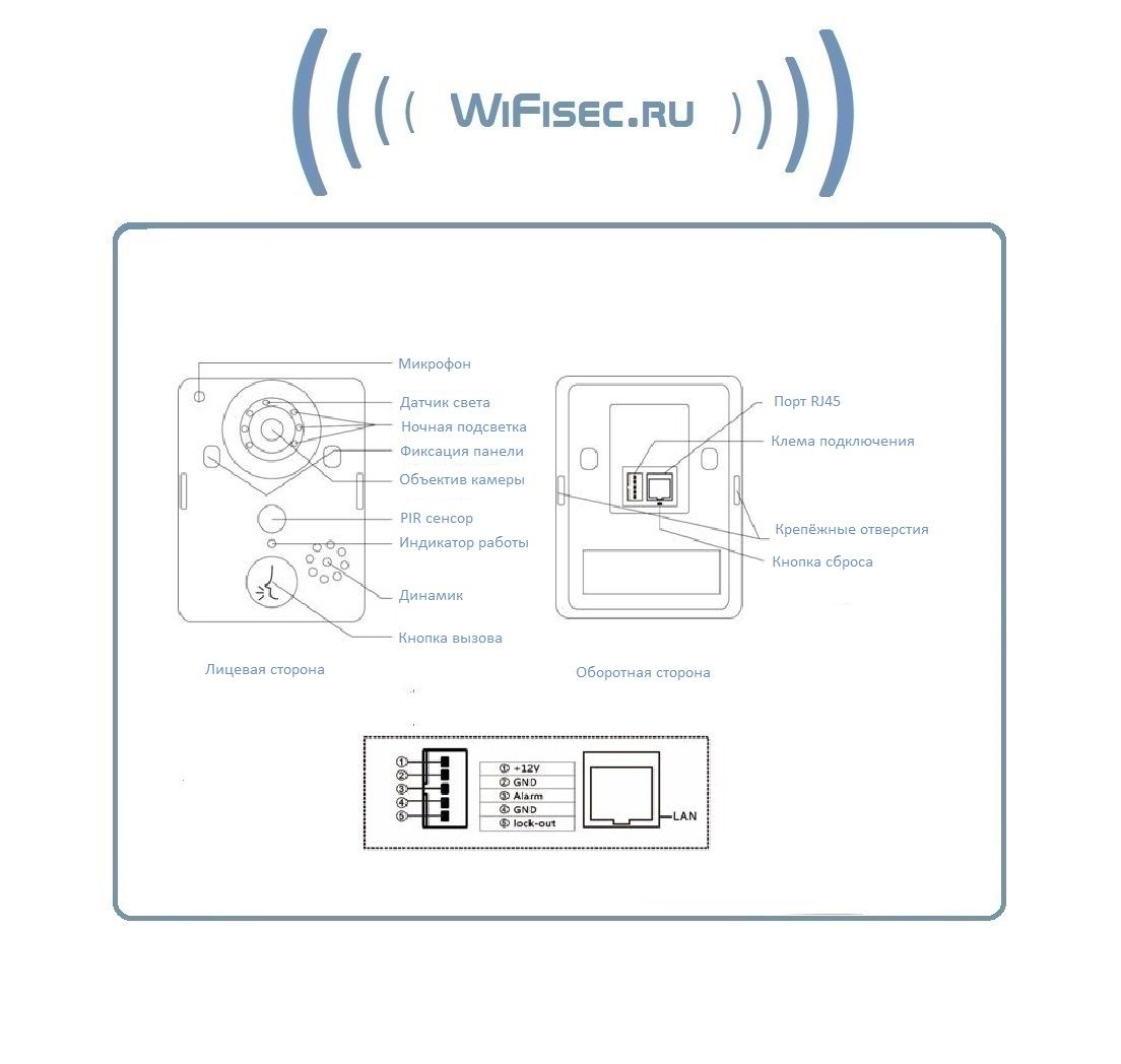 WiFi/LAN вызывная панель видеодомофона, интерком связь с активным подавлением шума, открытие замка через мобильное приложение, VGA. до - 20 град.С.