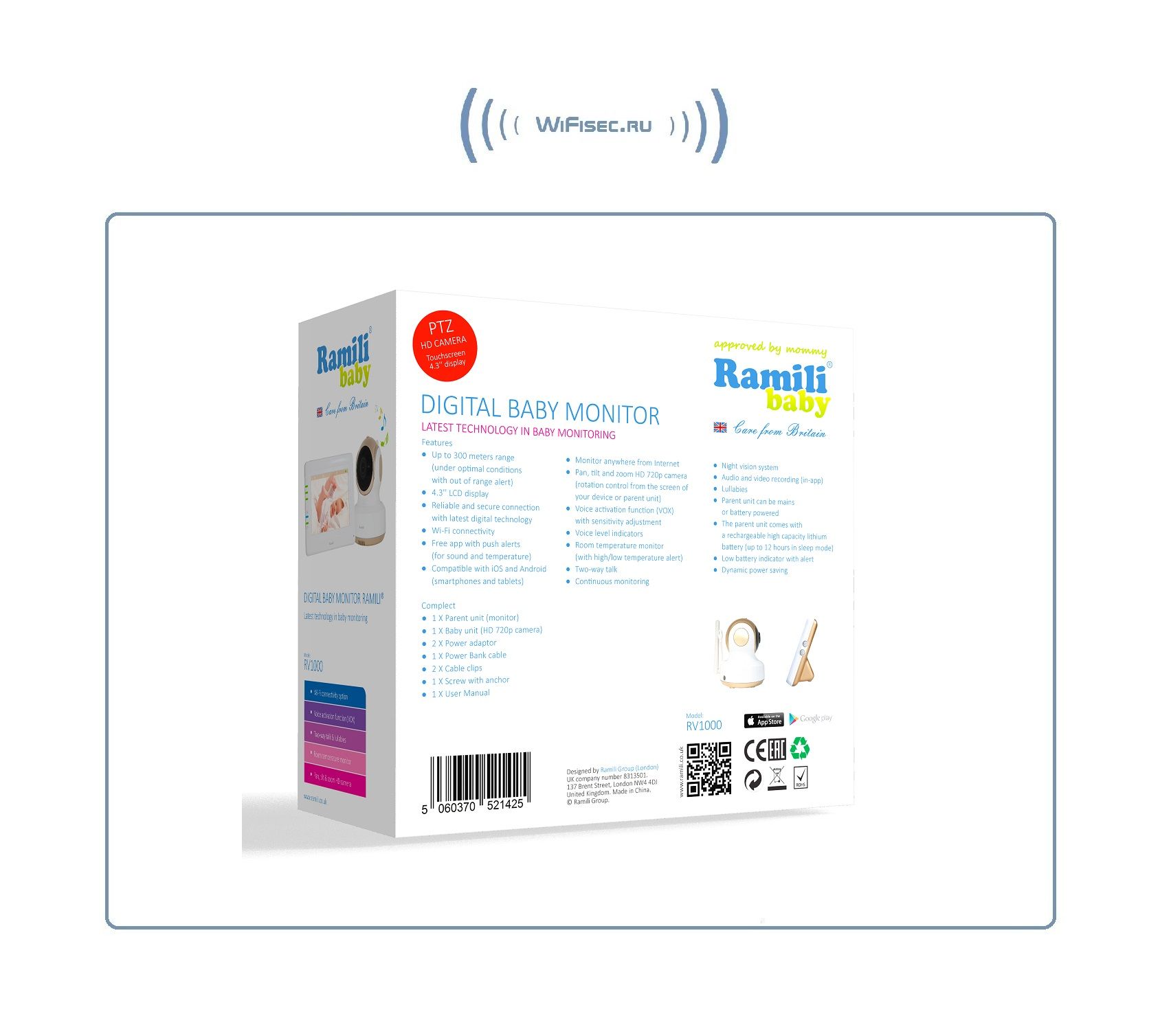 Английская компания Ramili специализируется на производстве детских товаров, тщательно подбирая материалы, используя современные технологии и современное оборудование. Поэтому продукция торговой марки Ramili всегда высокотехнологична и безопасна. Ramili Baby RV1000 — это надёжная видеоняня, стабильно работает в двух режимах: по собственной прямой связи между блоками для наблюдения на экране родительского блока и через Wi-Fi для наблюдения за ребенком на смартфонах или планшетах в высоком качестве HD.