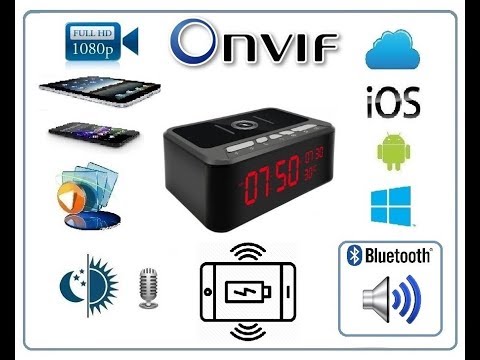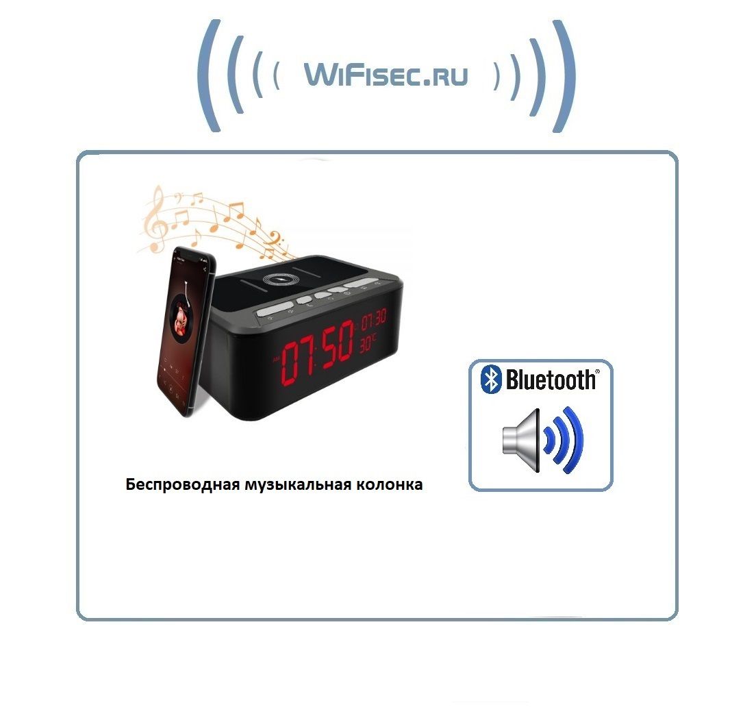 IP видеоняня WiFi (информатор времени + температуры в помещении, охранная видеокамера, беспроводная зарядка, стерео колонка Bluetooth) с DVR, Full HD 2 Mp