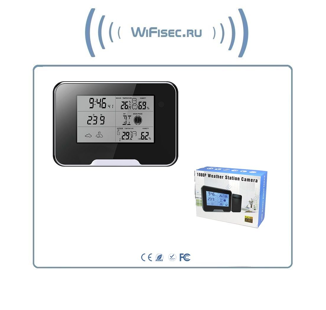 IP видеоняня WiFi (Настольные часы - метеостанция с внешним датчиком температуры, охранная видеокамера) с аккумулятором и с DVR, Full HD 1 Mp (HDSmartIPC)